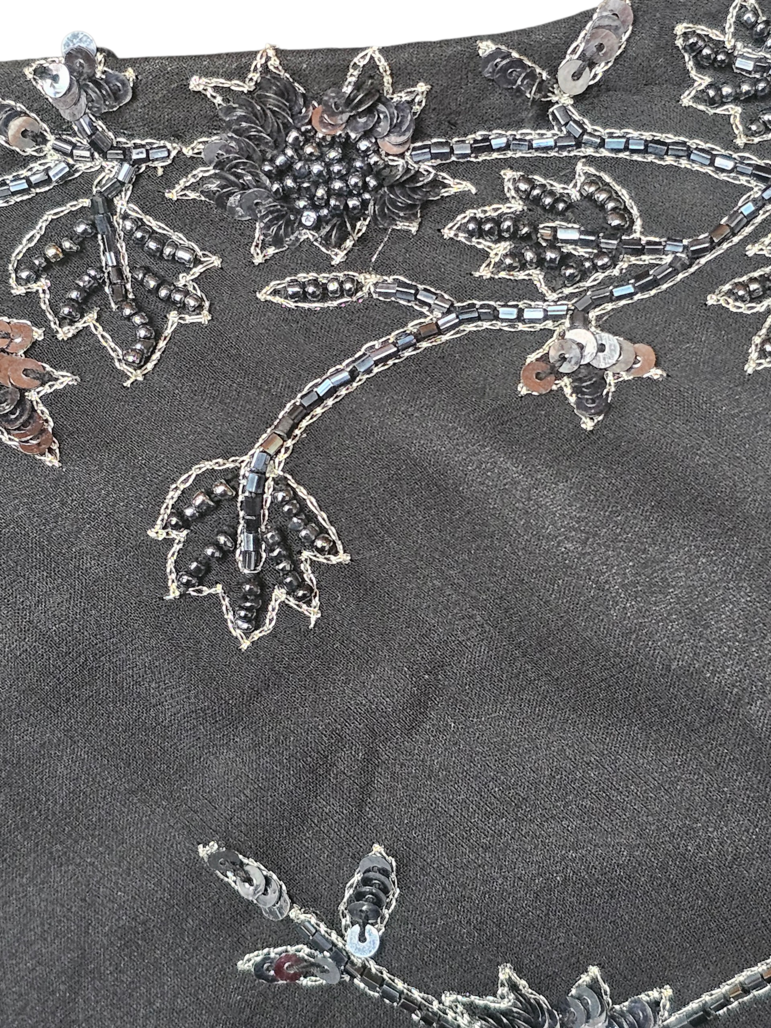 100% Silk Vintage Black Beaded Asymmetrical HighLow Dress - Scala