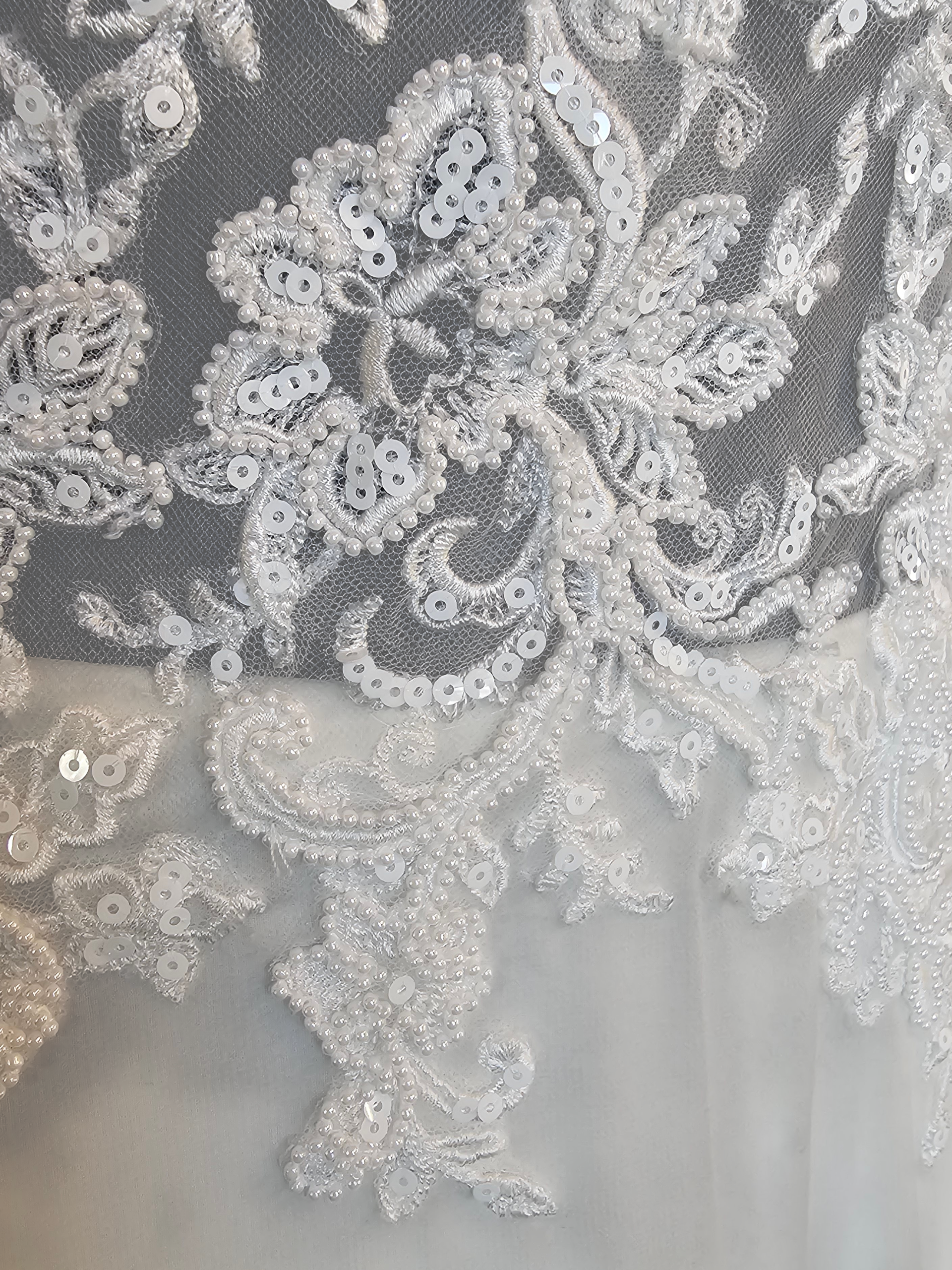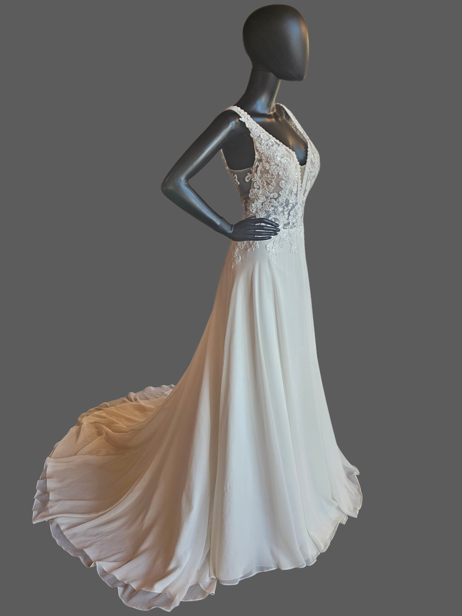 Ivory V-Neck Beaded Plunge Chiffon Skirt A-Line Wedding Gown - Beloved Private Label