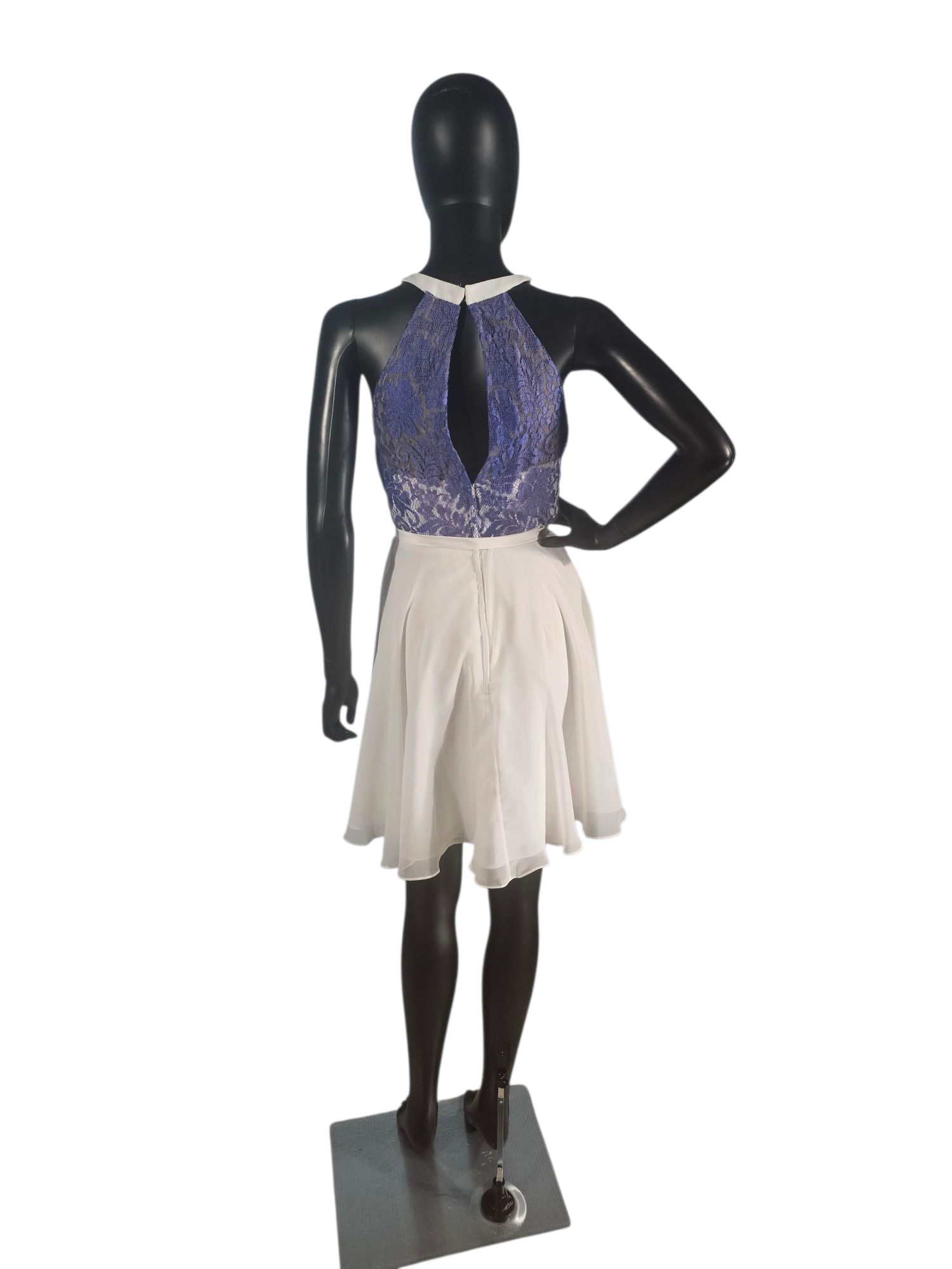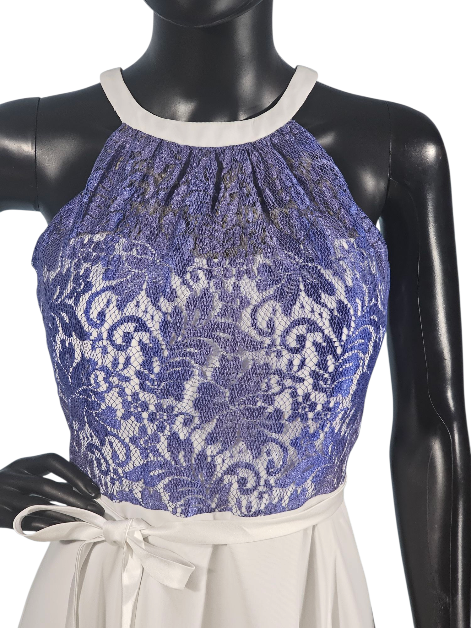 Blue Lace/White Chiffon Halter Mid-Length Dress - Da Vinci