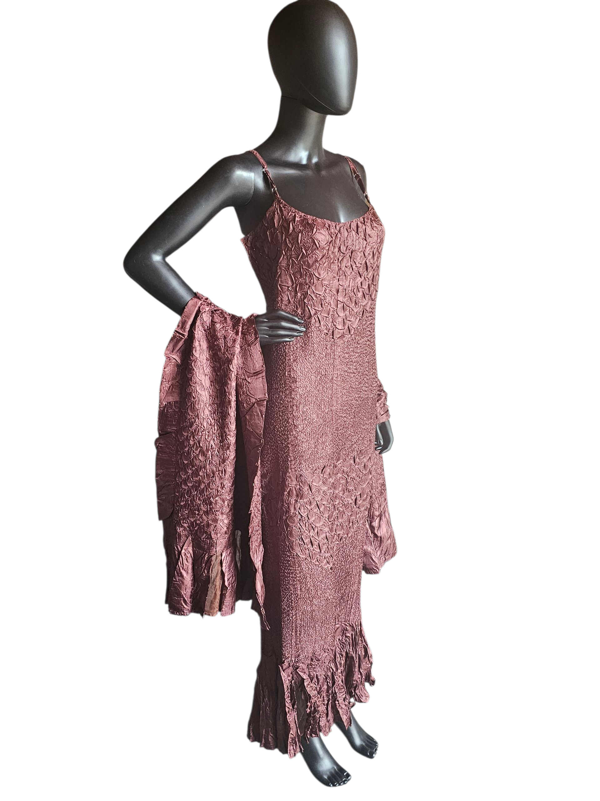 Crushed Silk Burgandy Formal Dress W/Shawl