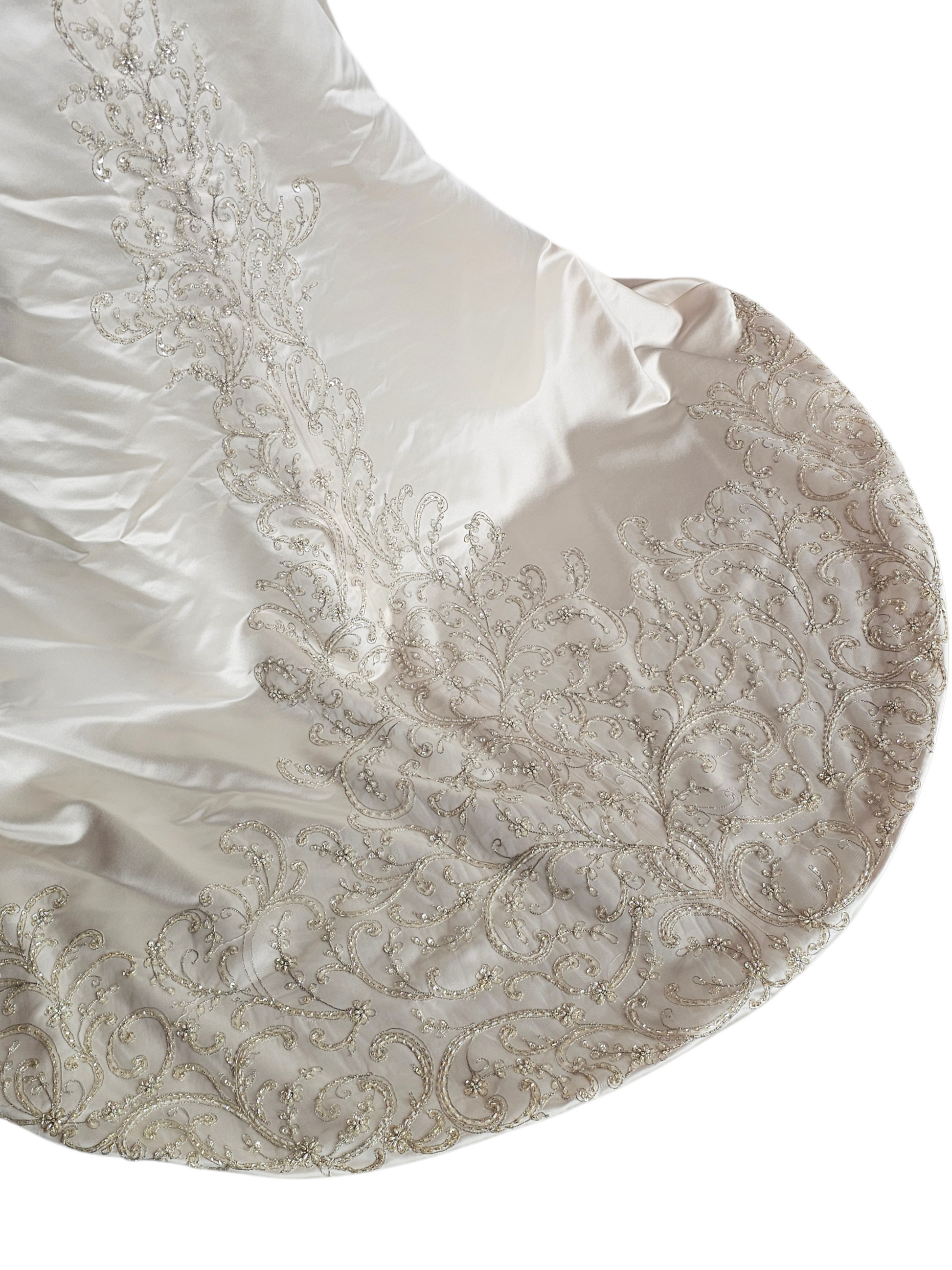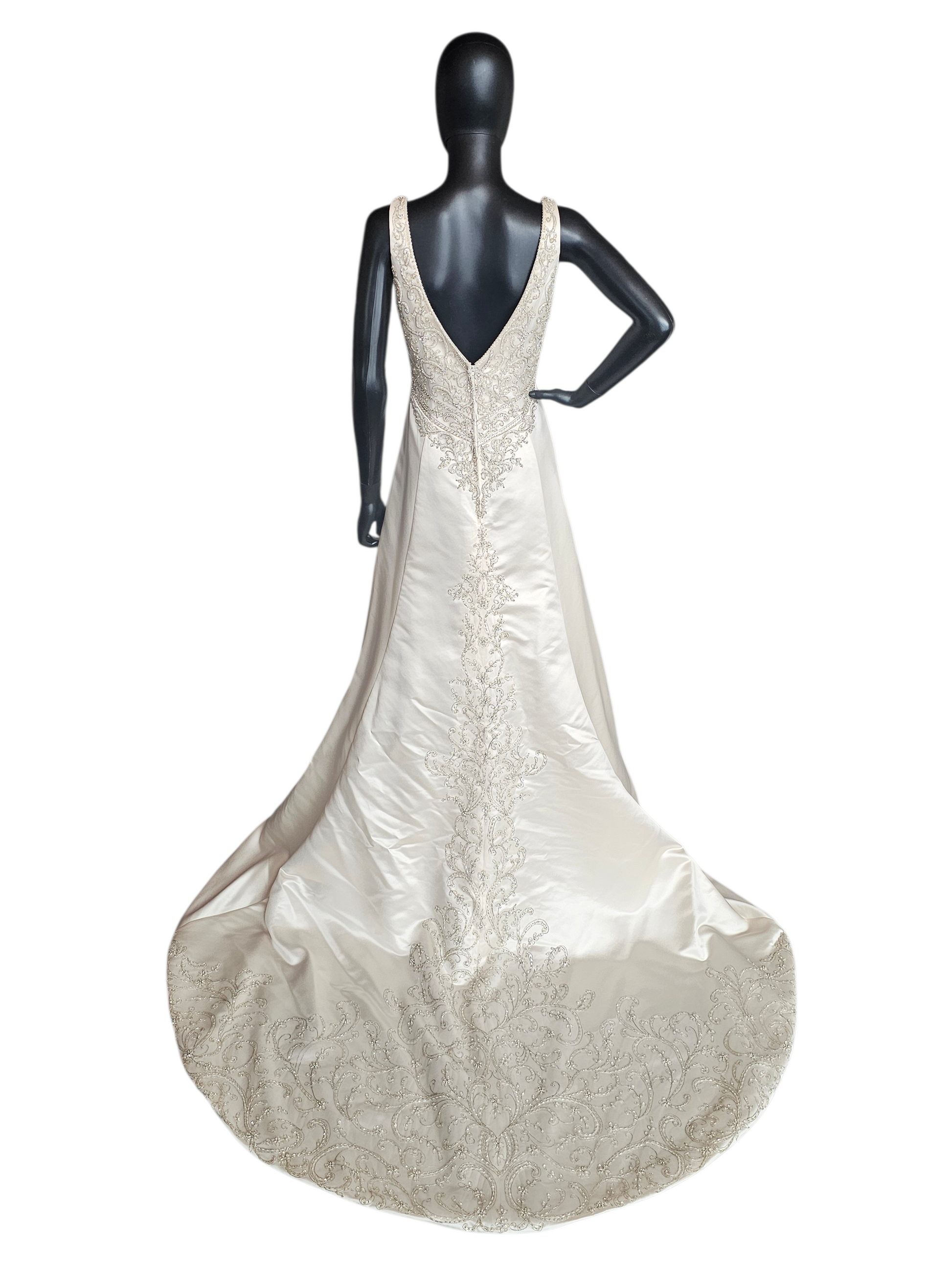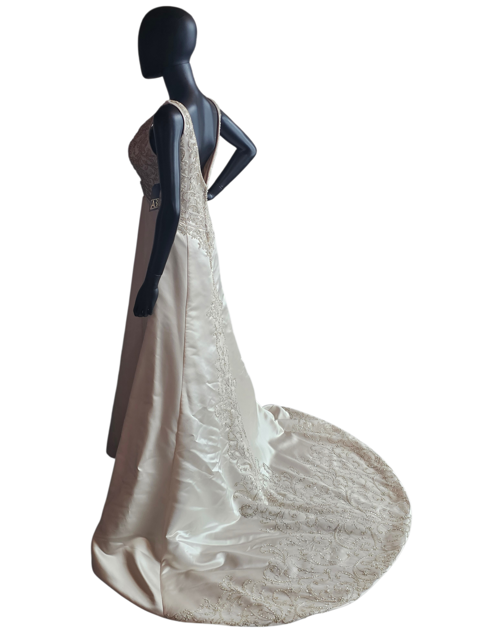 Champagne Empire Satin V-Neck Wedding Gown - Casablanca