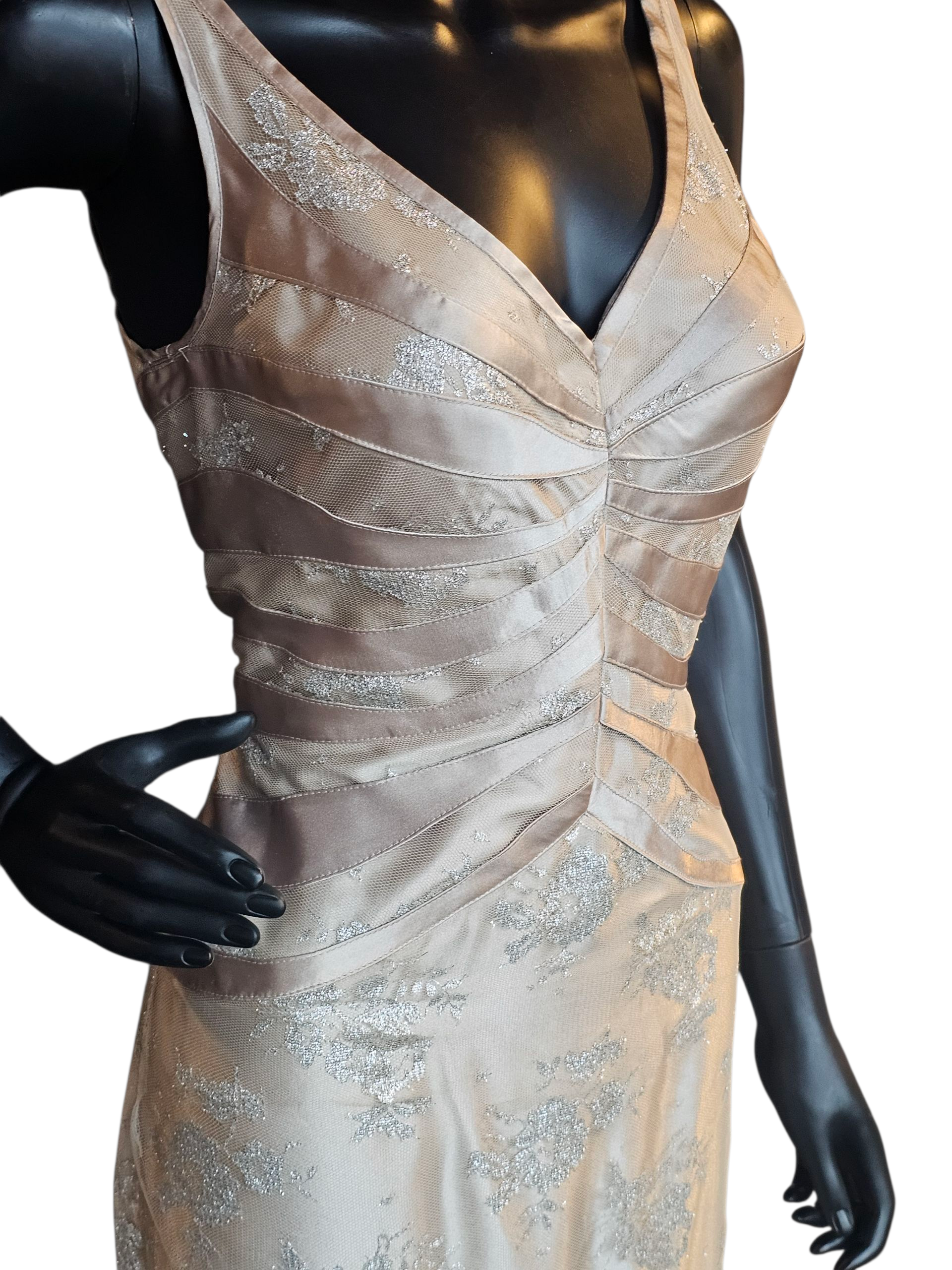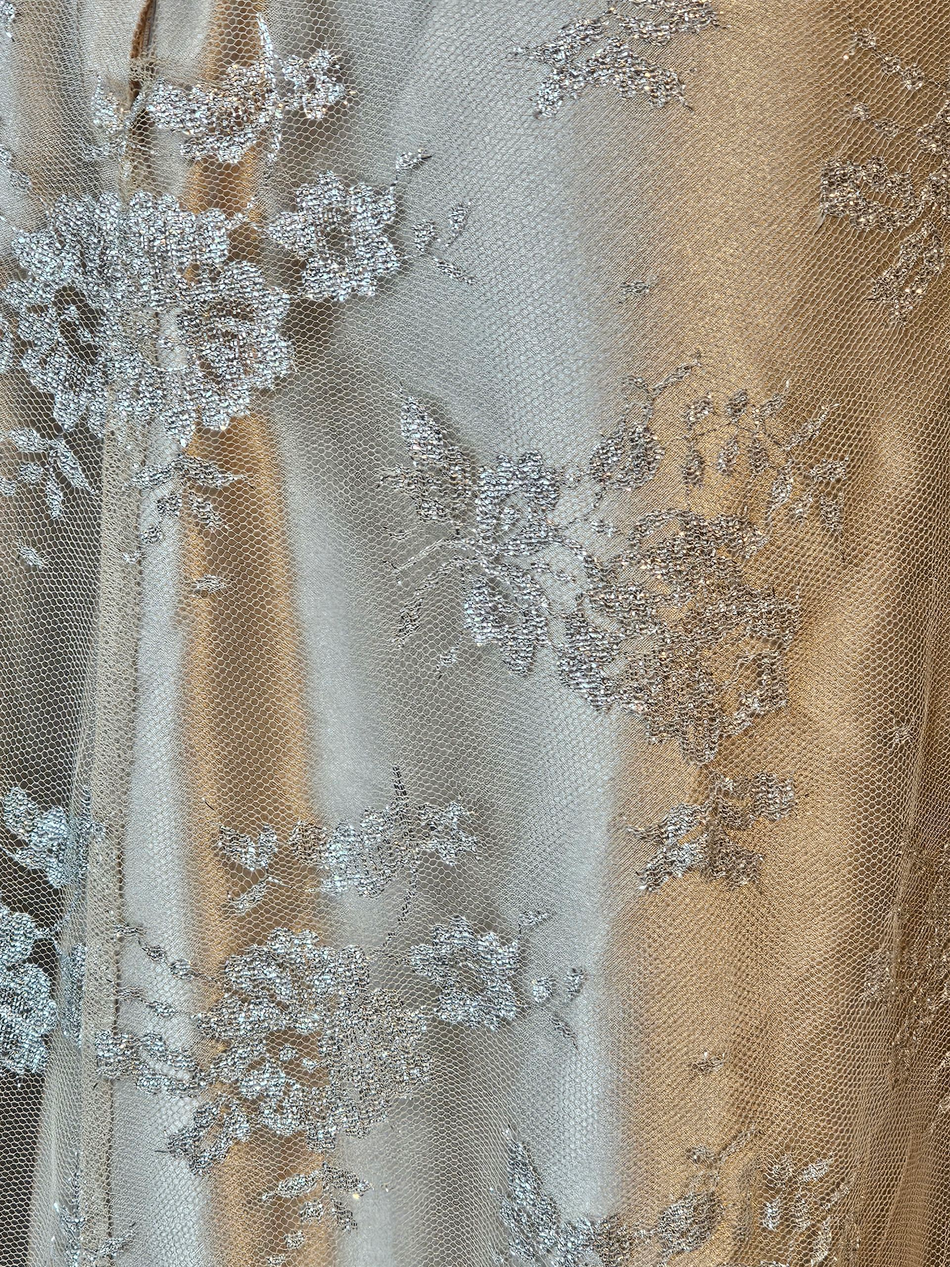 Gold Satin/Silver Lace V-Neck Tiered - JS Collections