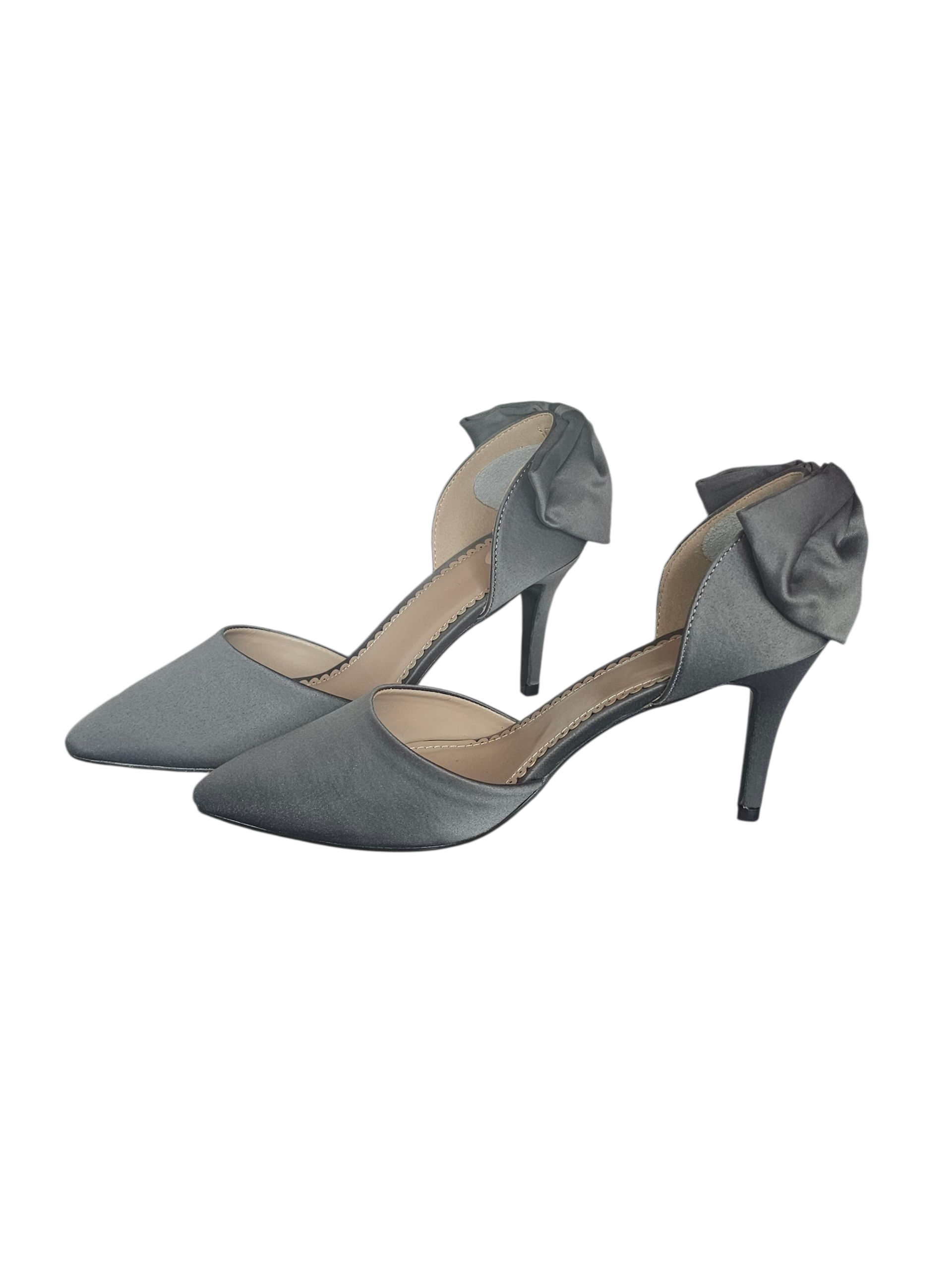 Grey Bow Satin Shoes