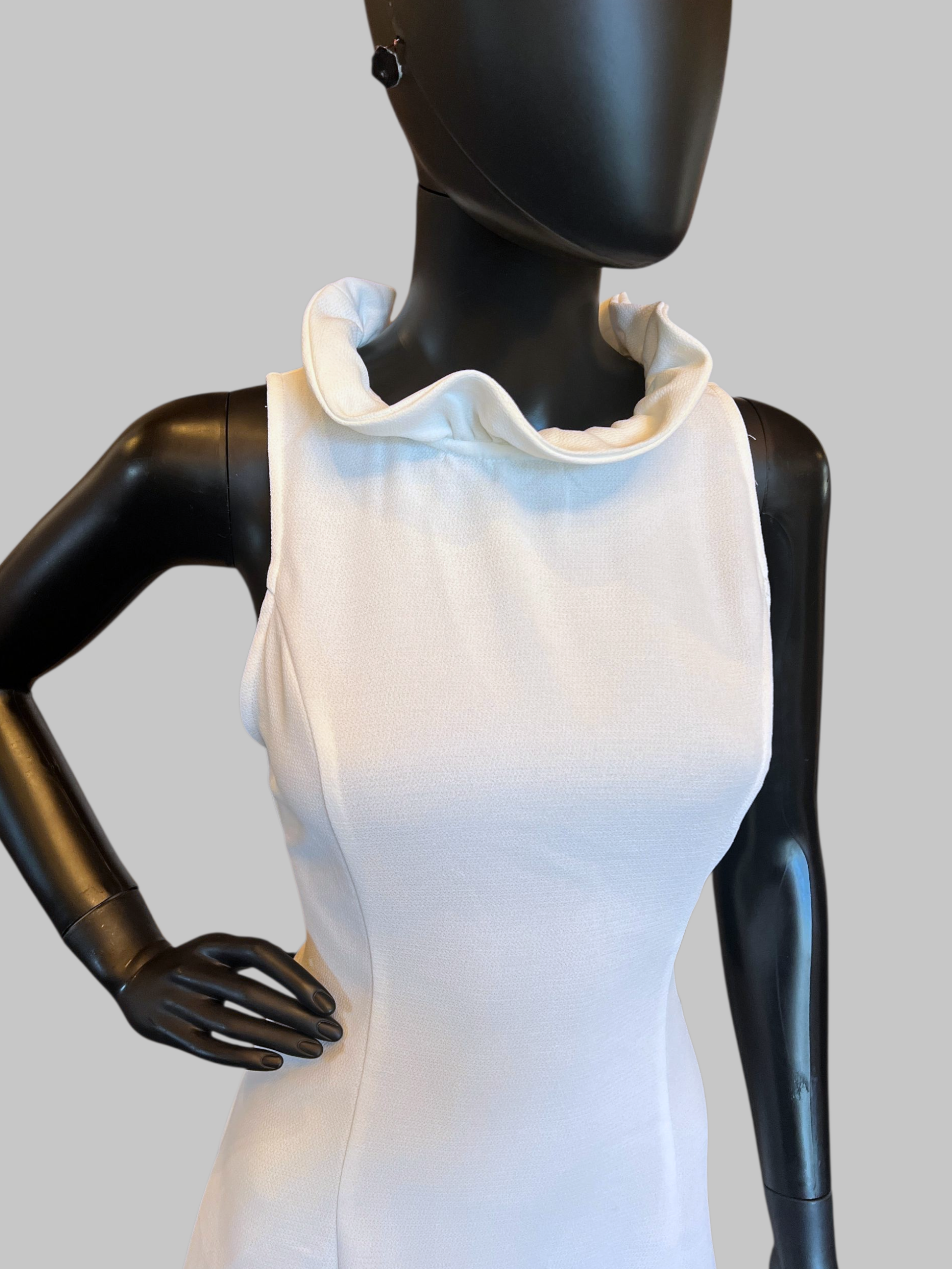 High Ruffle Neck Mid-Length Sheath Ivory Dress / Party Dress / Courthouse Wedding - NWT DO+BE