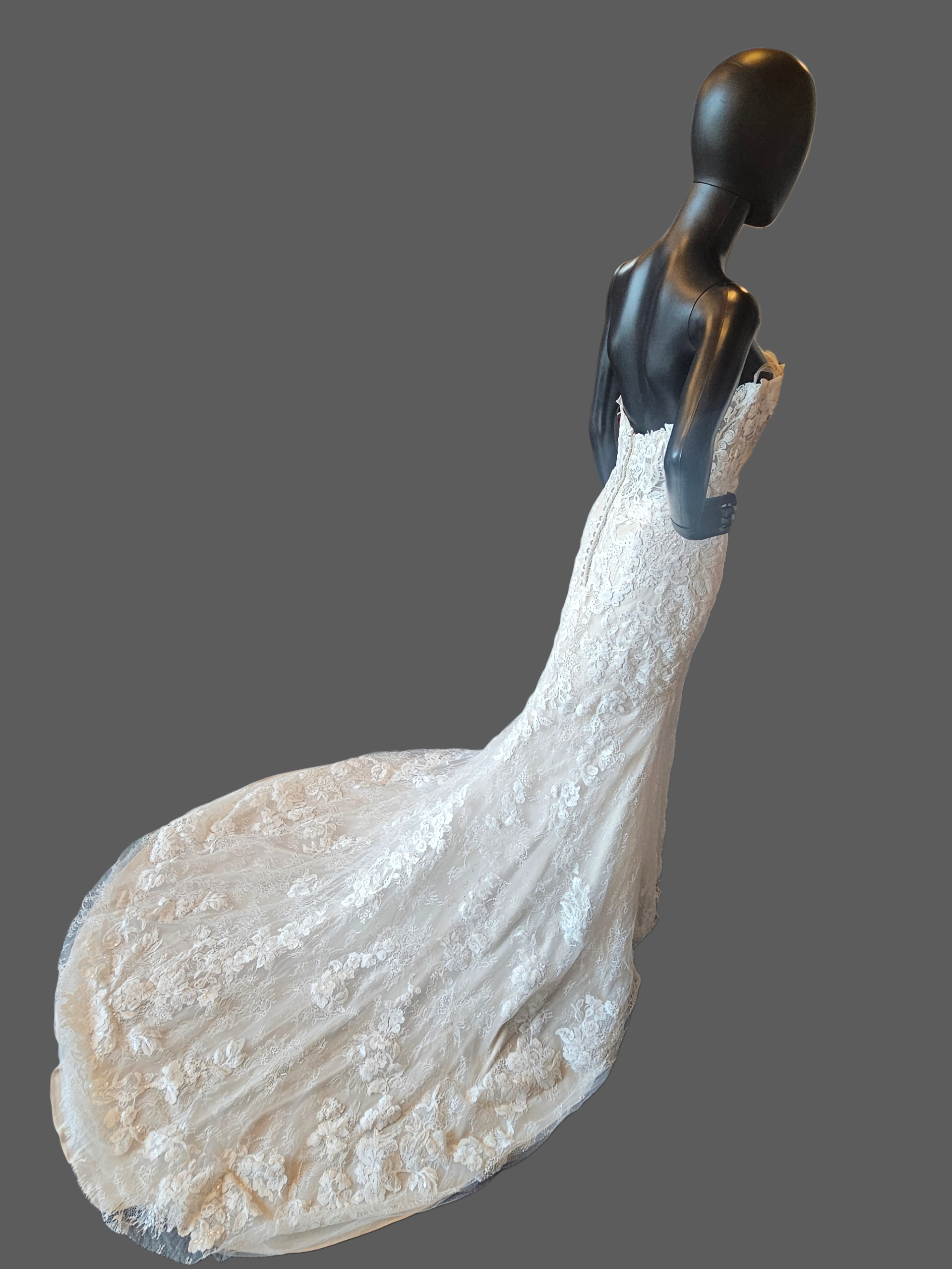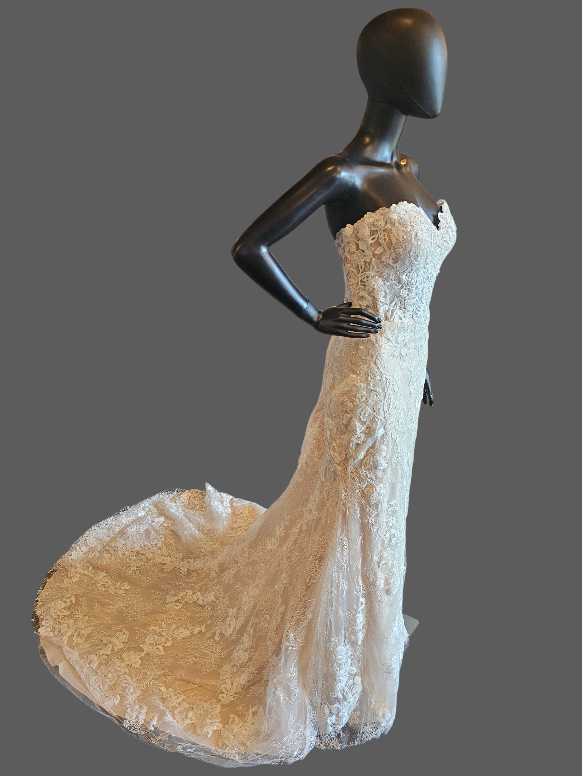 Ivory/Honey Beaded Fitted Lace Sweetheart Strapless Wedding Dress - Mori Lee