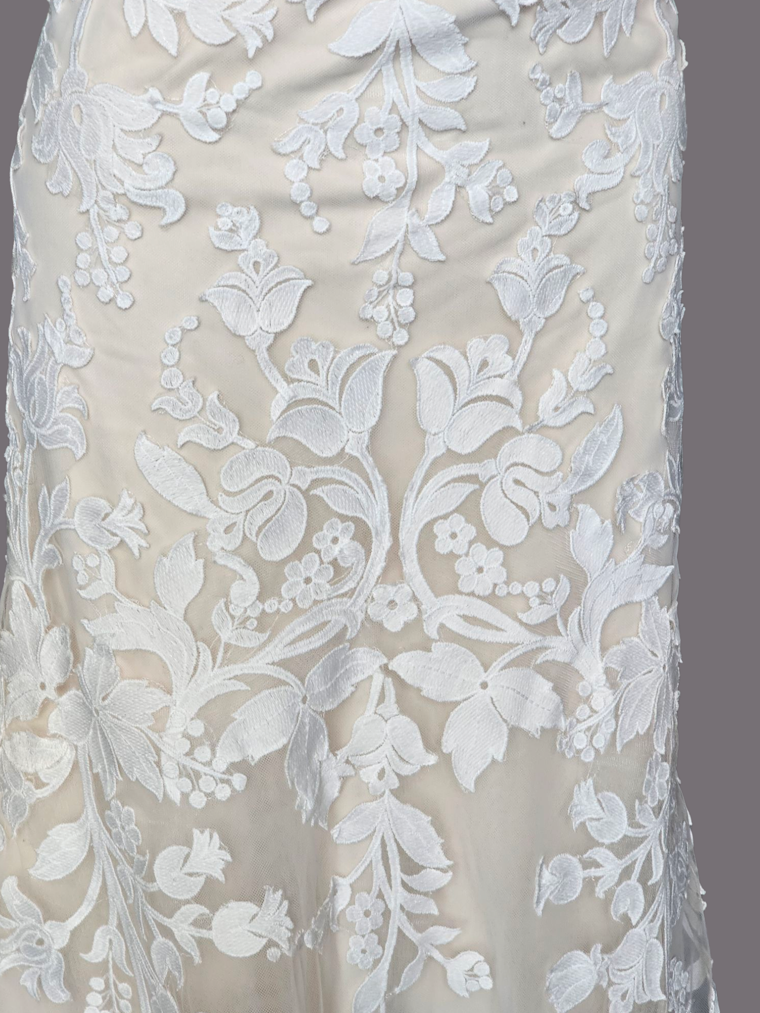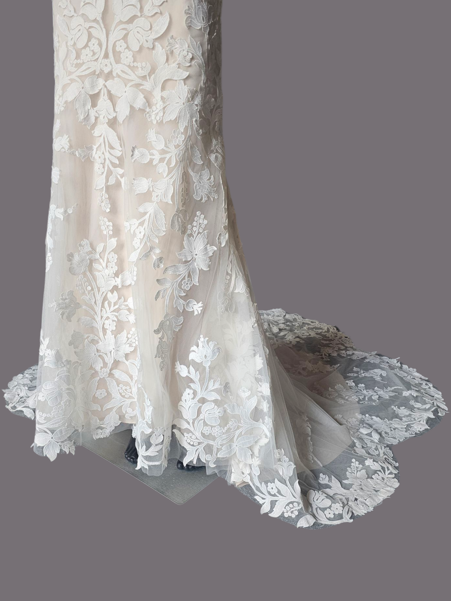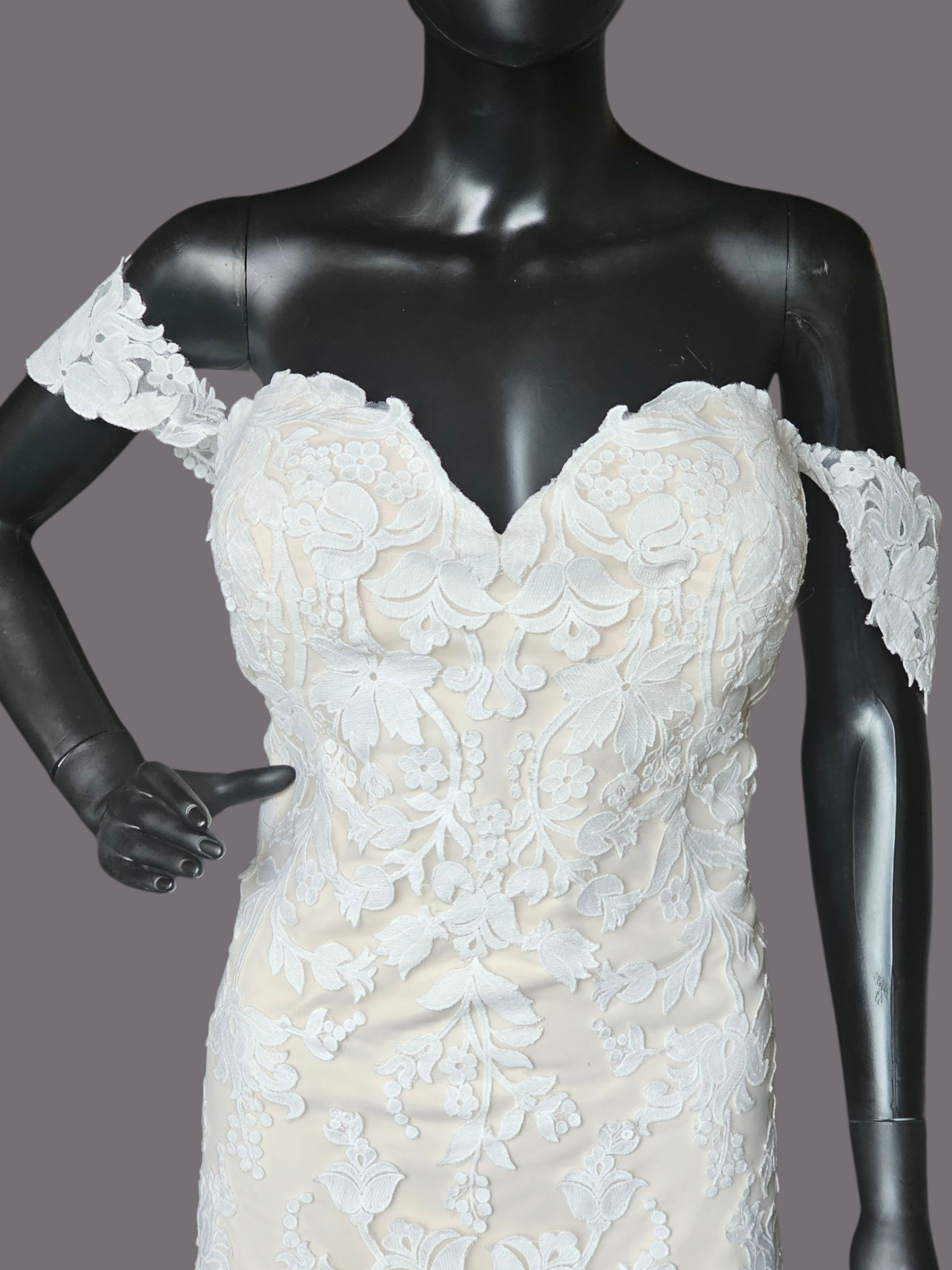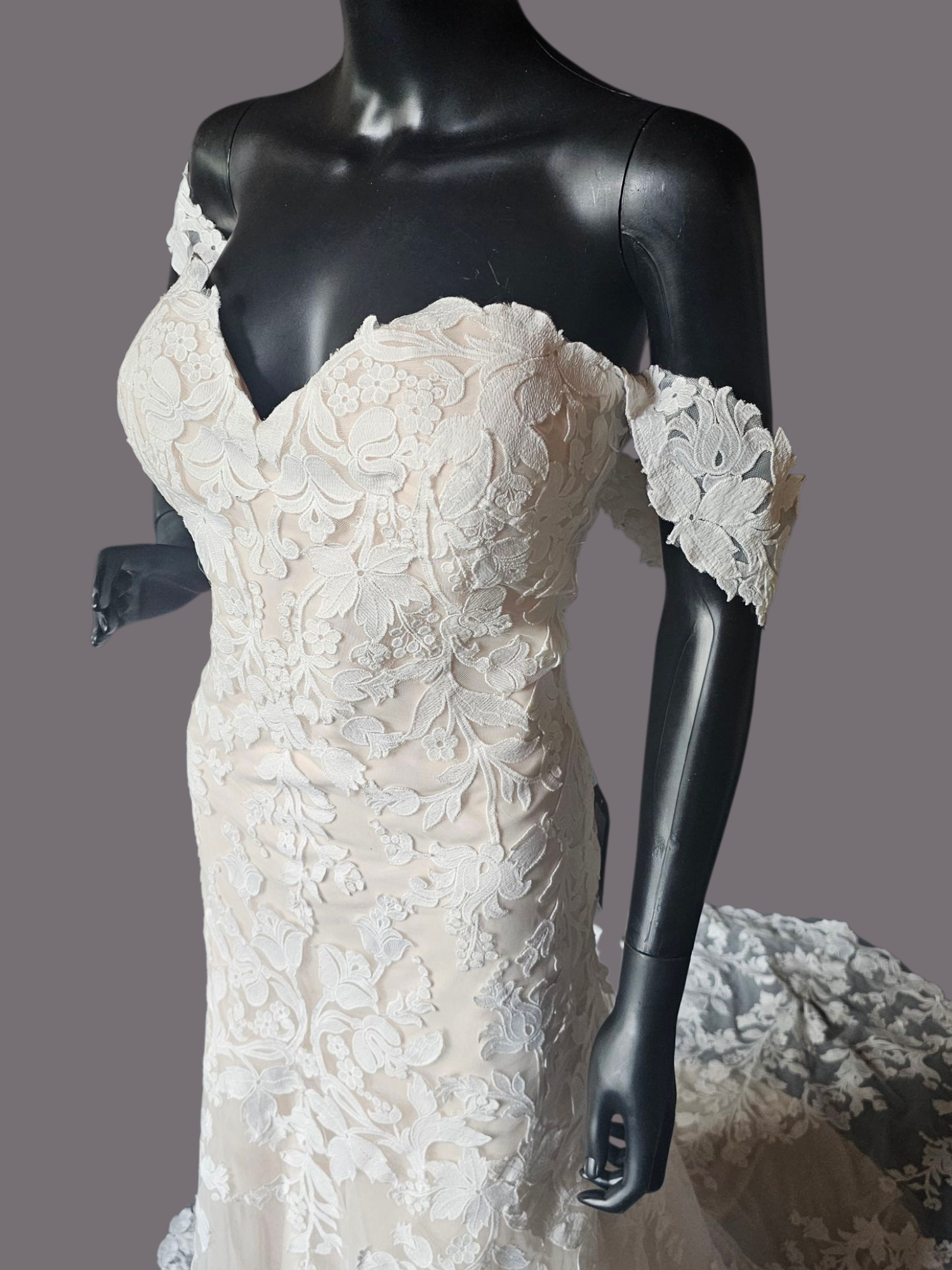 Ivory/Champ Floral Lace Off Shoulder Wedding Gown - Madeline Gardner