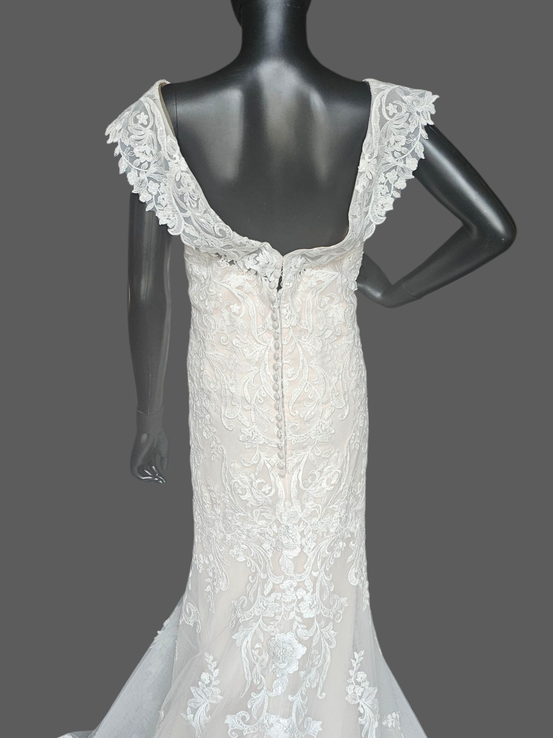 Ivory/Champagne Lace Off Shoulder/Portrait Collar Wedding Gown - Mori Lee