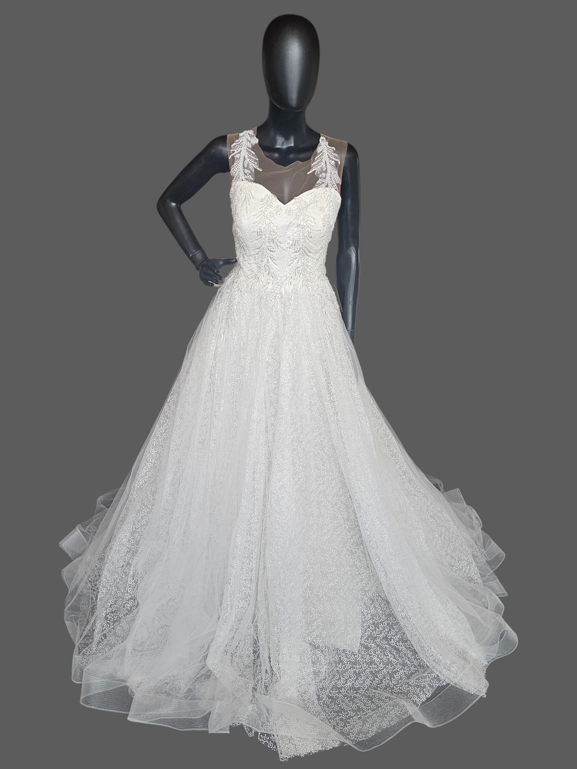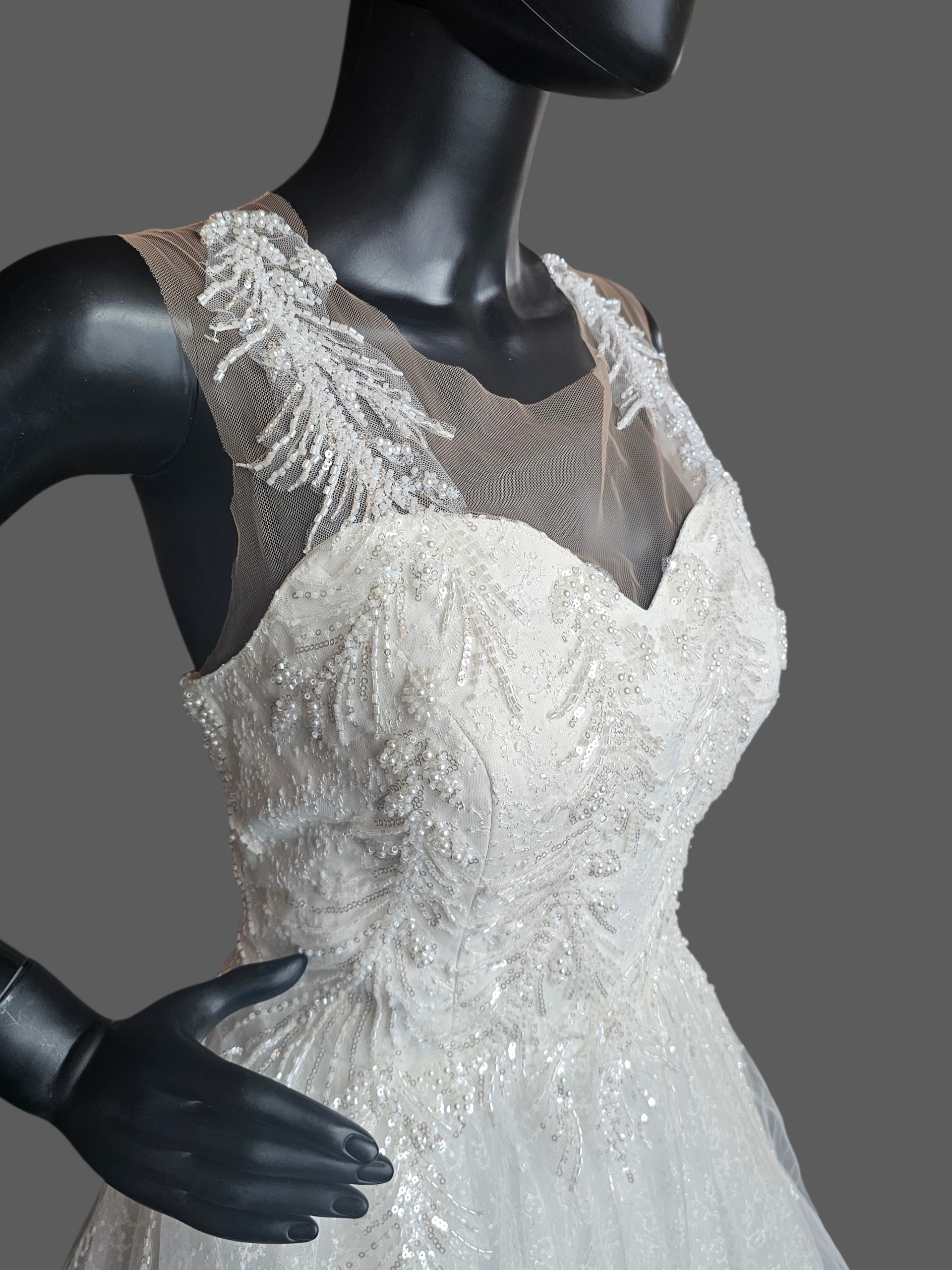 Ivory Illusion Sweetheart Sparkle Lace Underlay A-Line Wedding Gown - Di La Sena