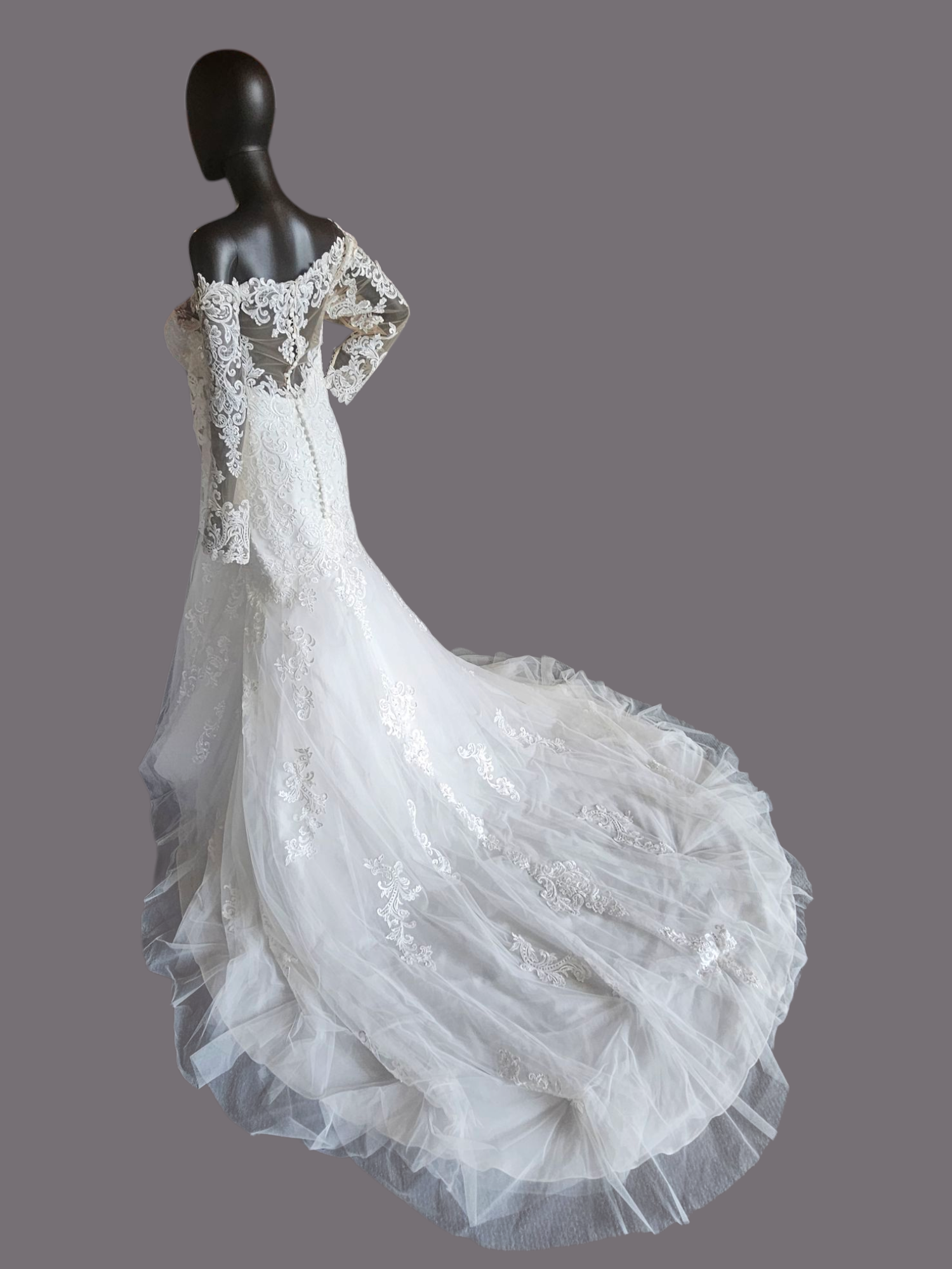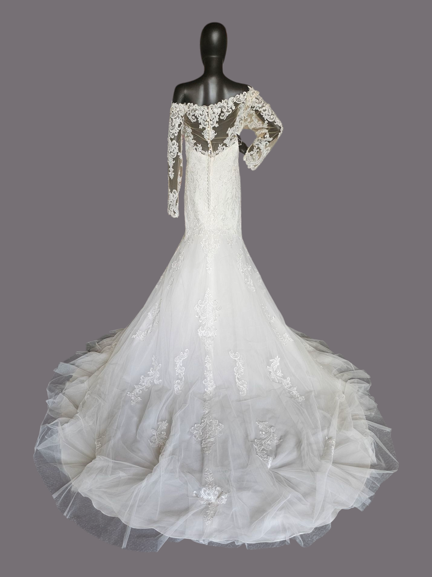 Ivory Lace Overlay Long Sleeve Wedding Gown - Morilee Madeline Gardner