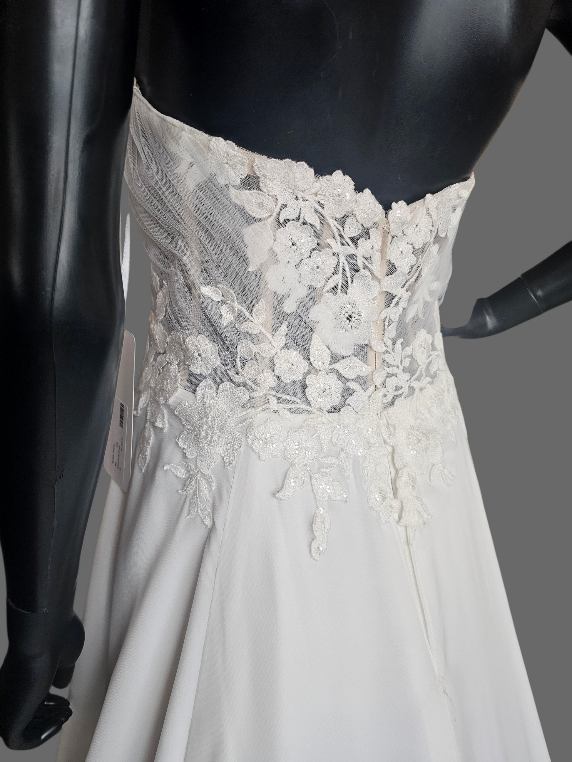 Price reduced: there is a small snag on the left side hemline. Likely, this will be removed anyway for an average height person during the alteration process. Please contact our store for more information.