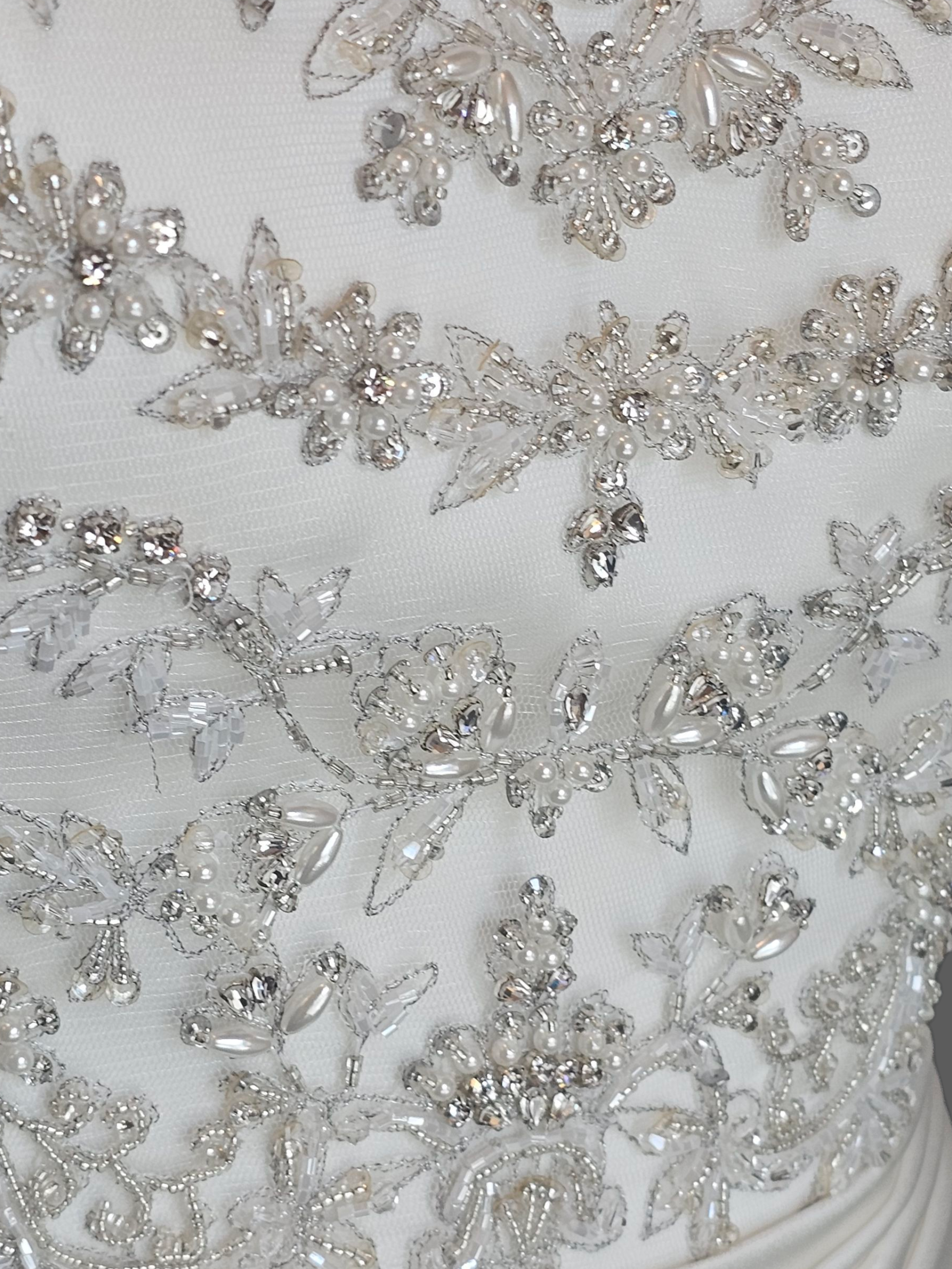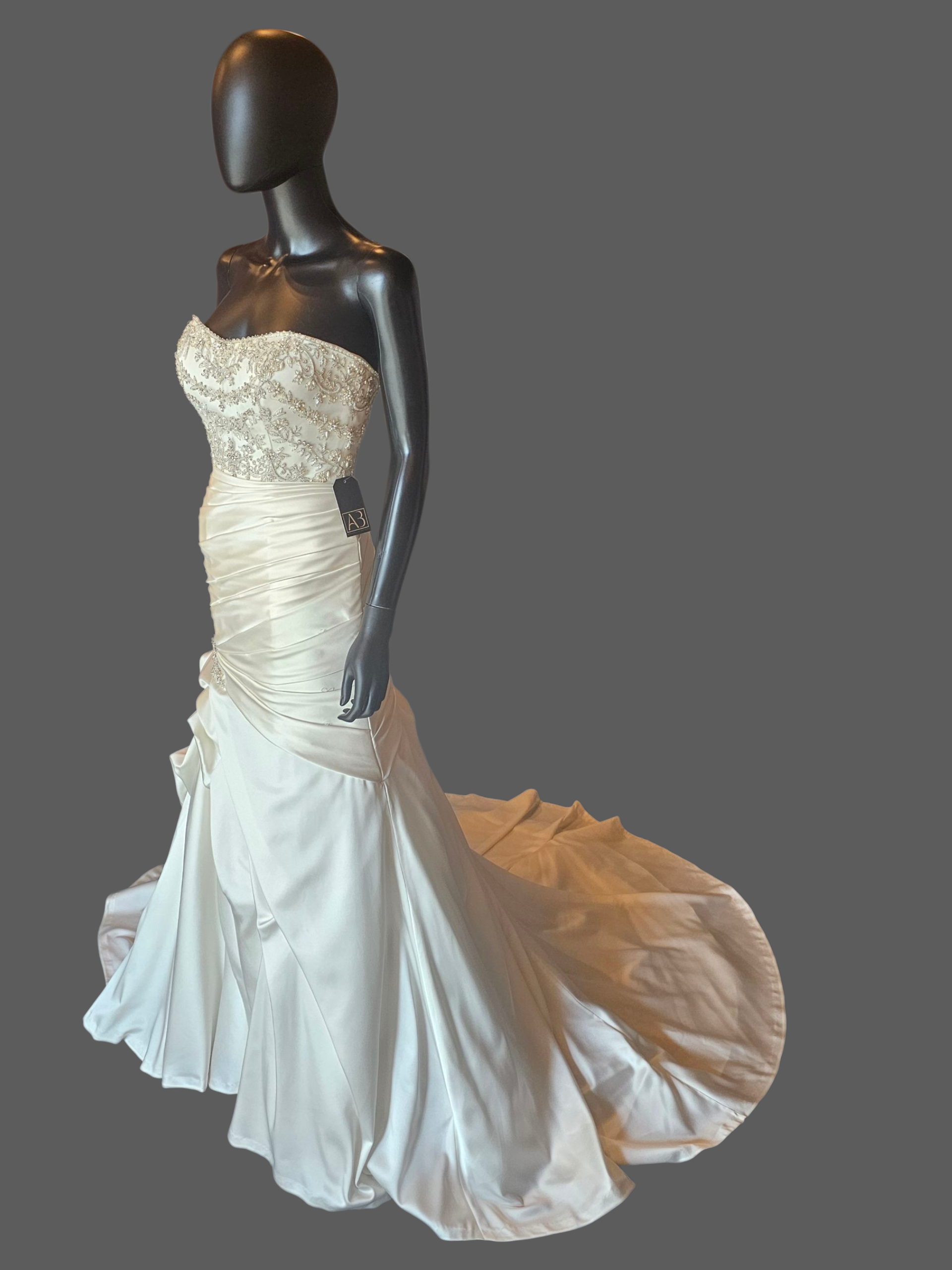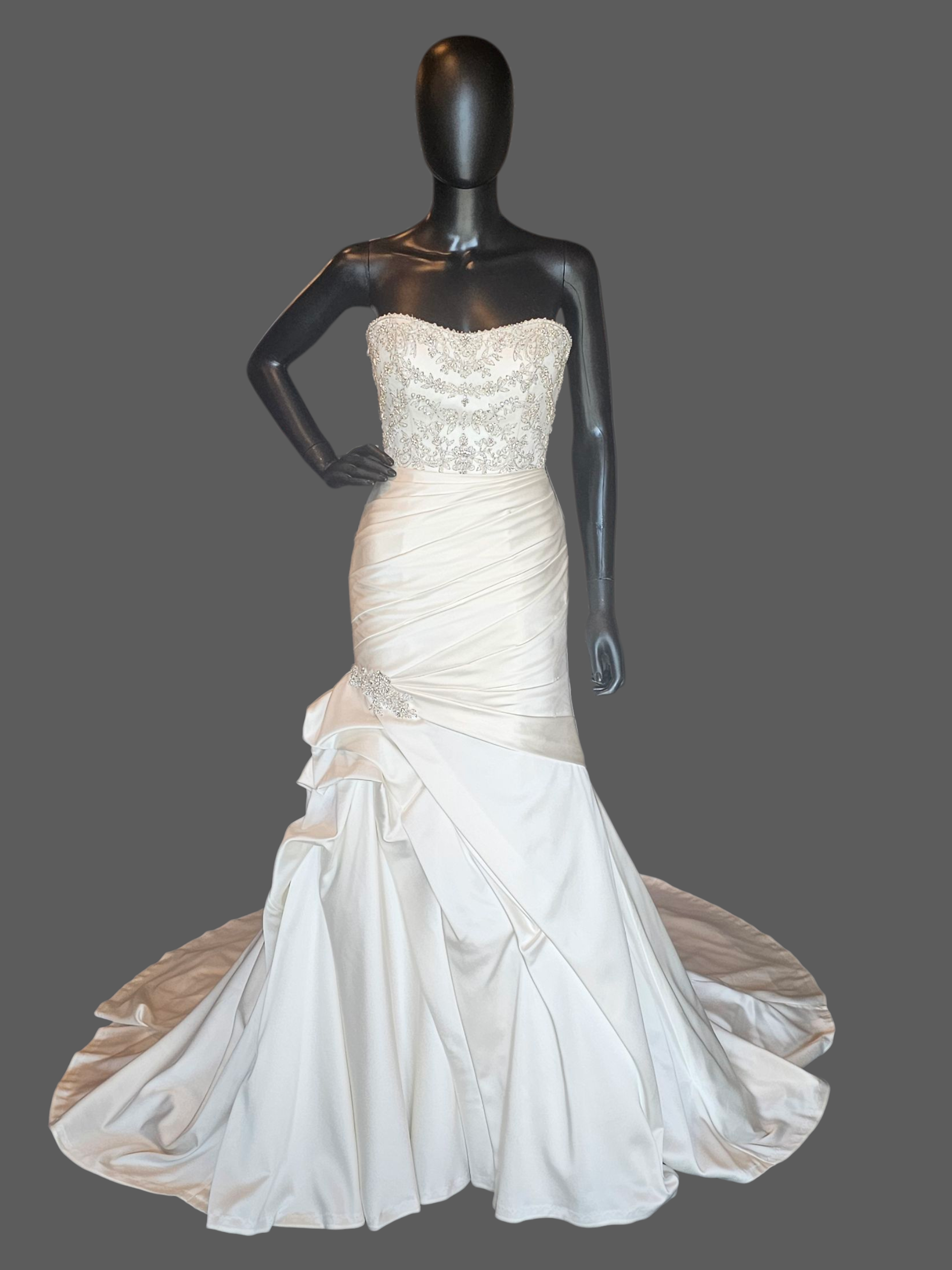 Ivory Silky Satin Side Sweep Fit/Flare Wedding Gown - Casablanca