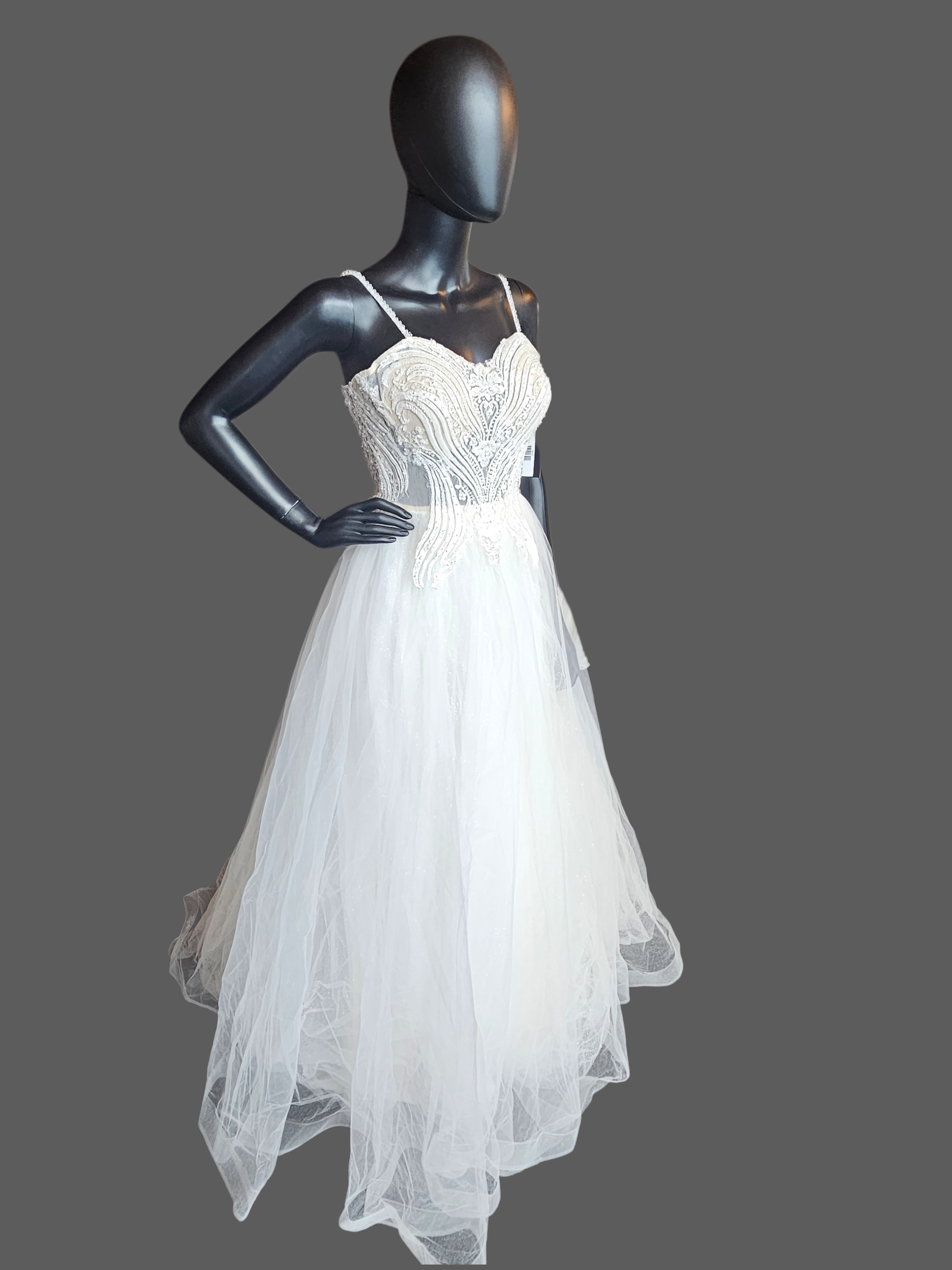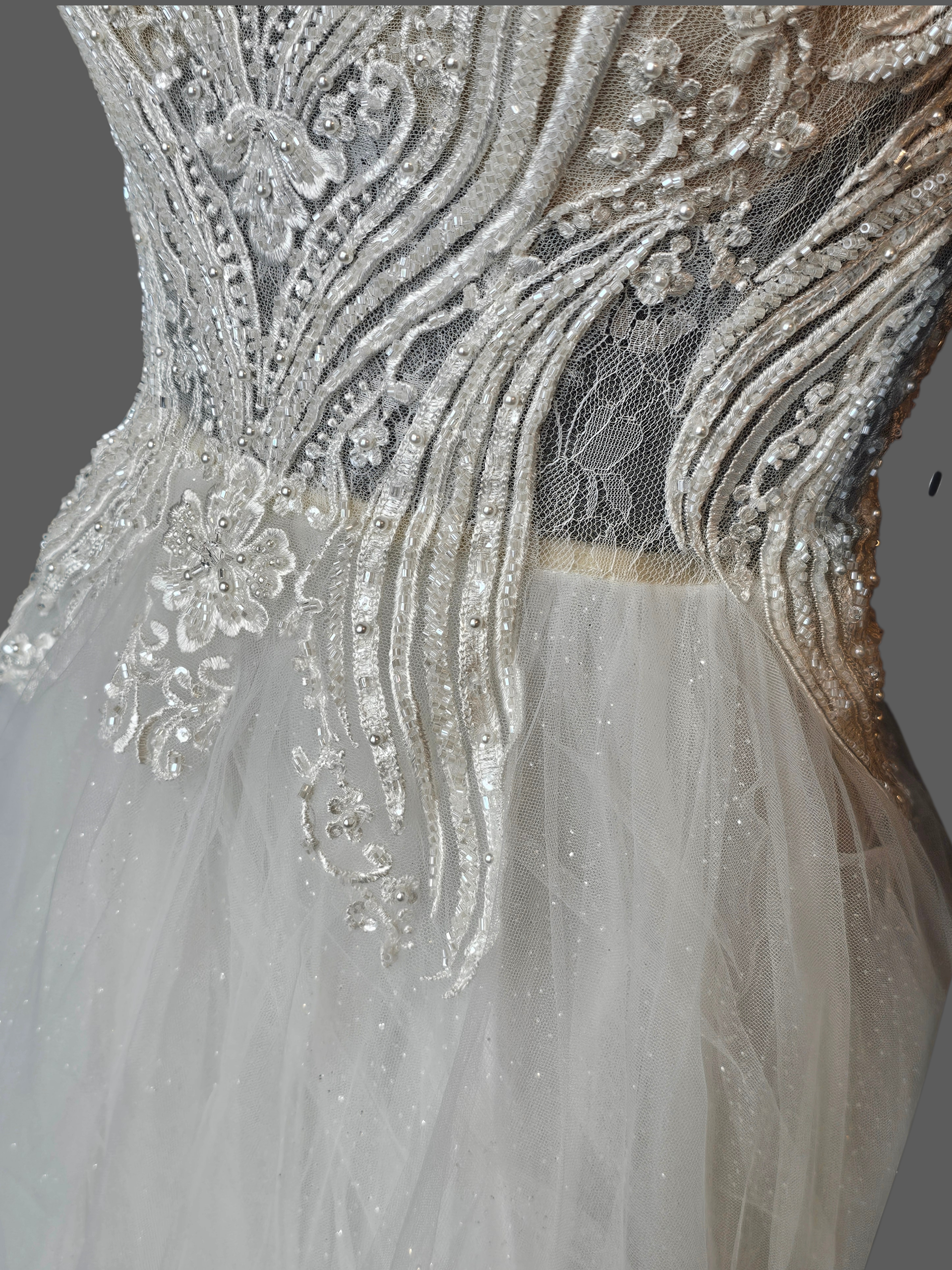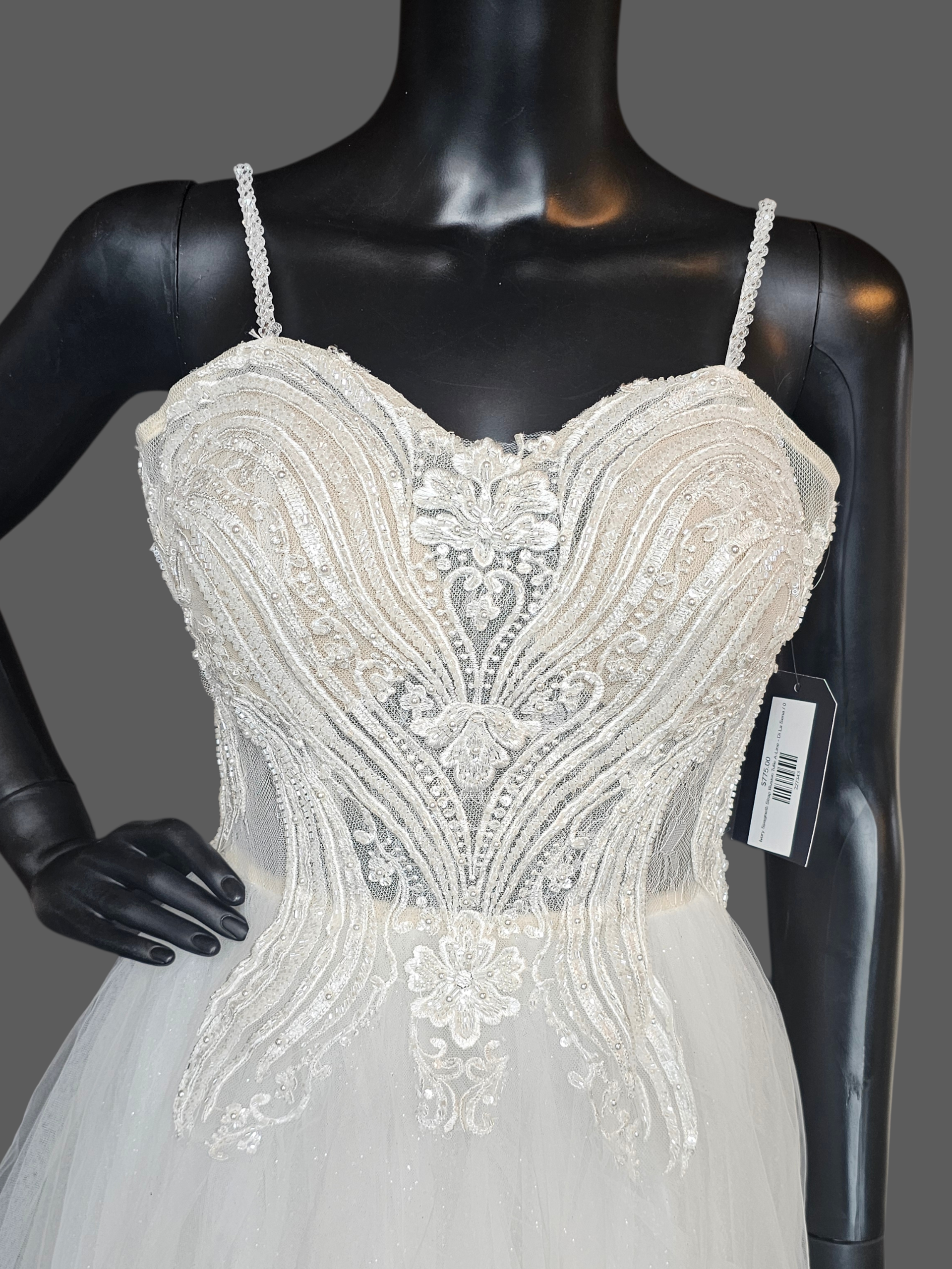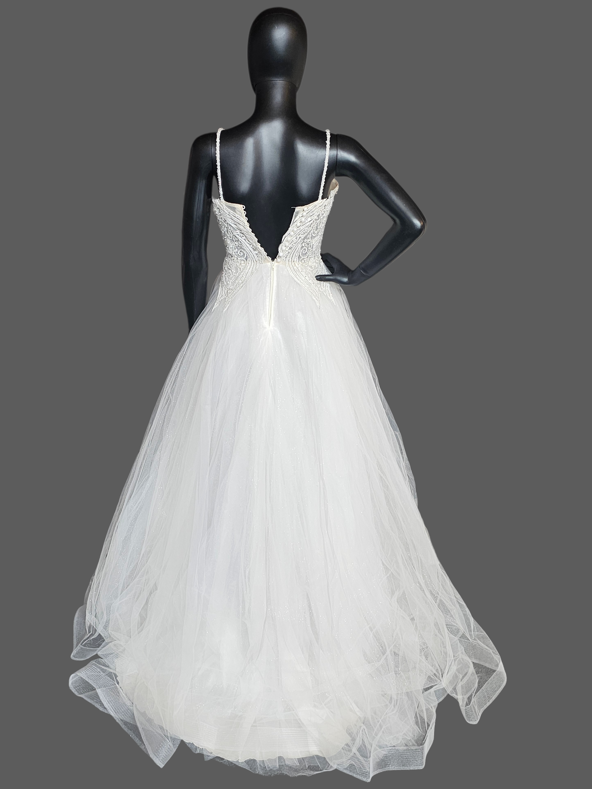 Ivory Spaghetti Strap Illusion Bodice Tulle A-Line Wedding Gown - Di La Sena - NWT