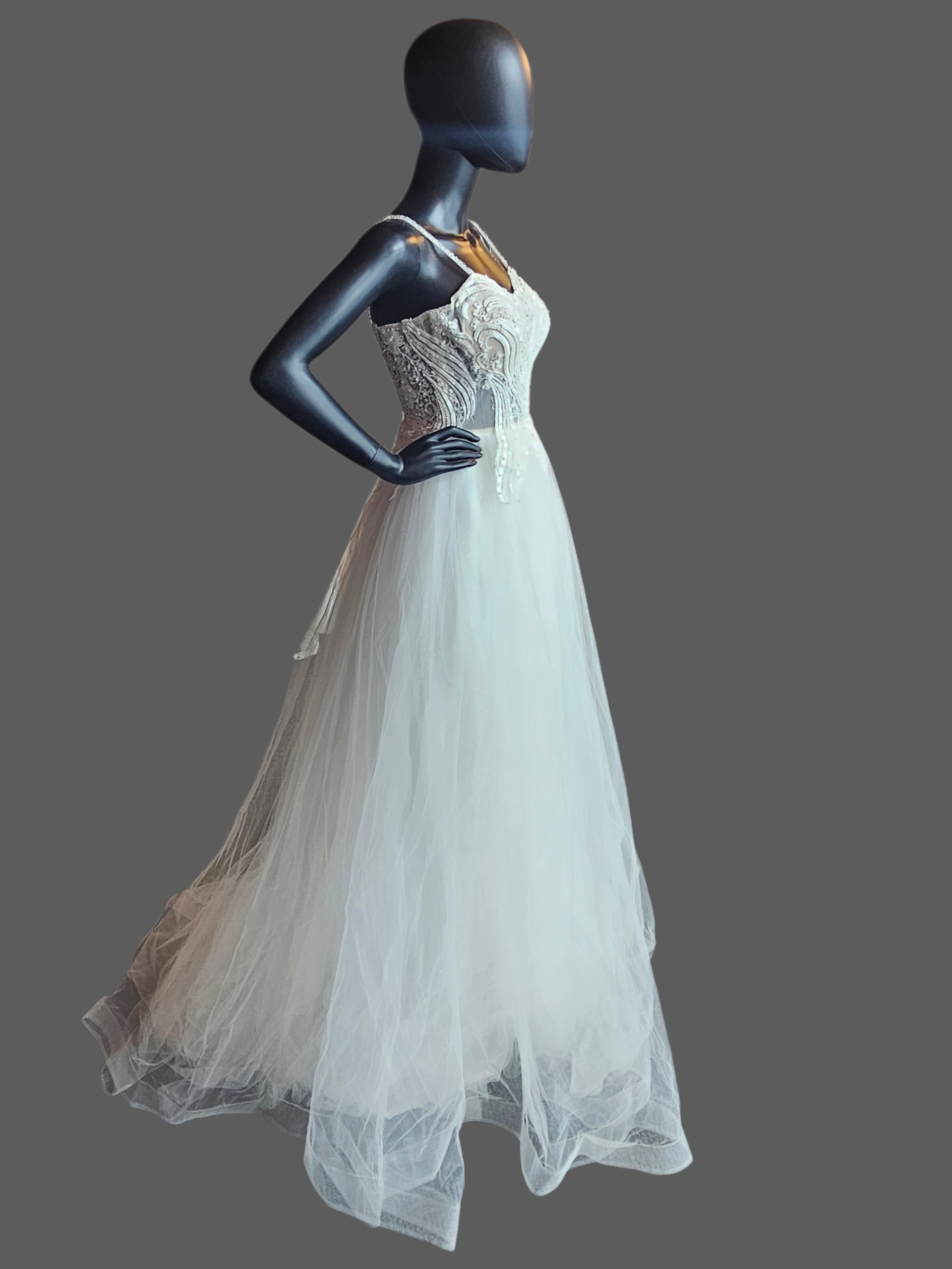 Ivory Spaghetti Strap Illusion Tulle A-Line - Di La Sena