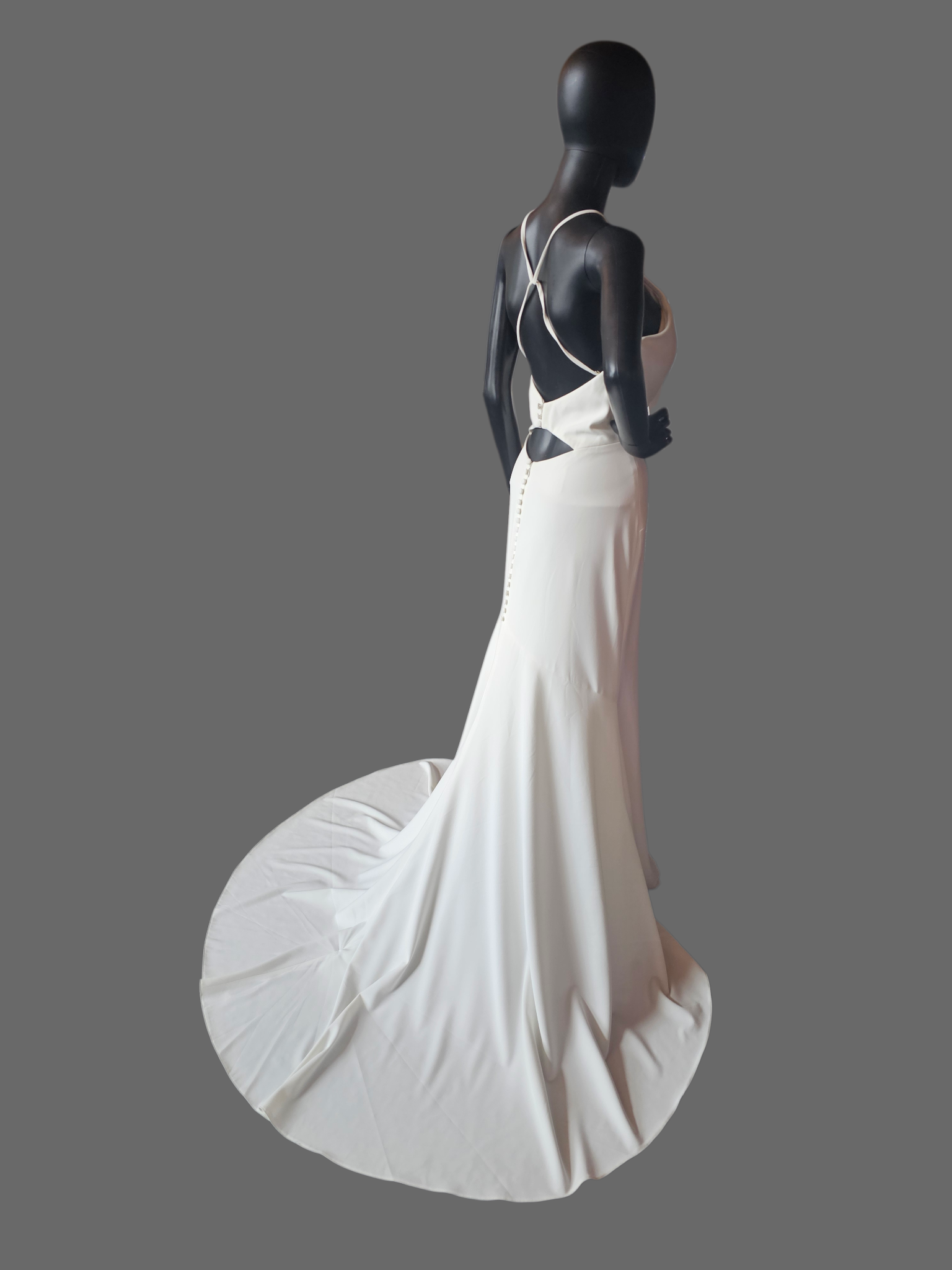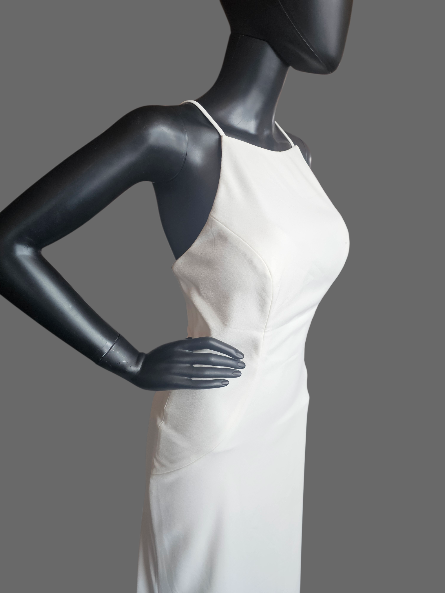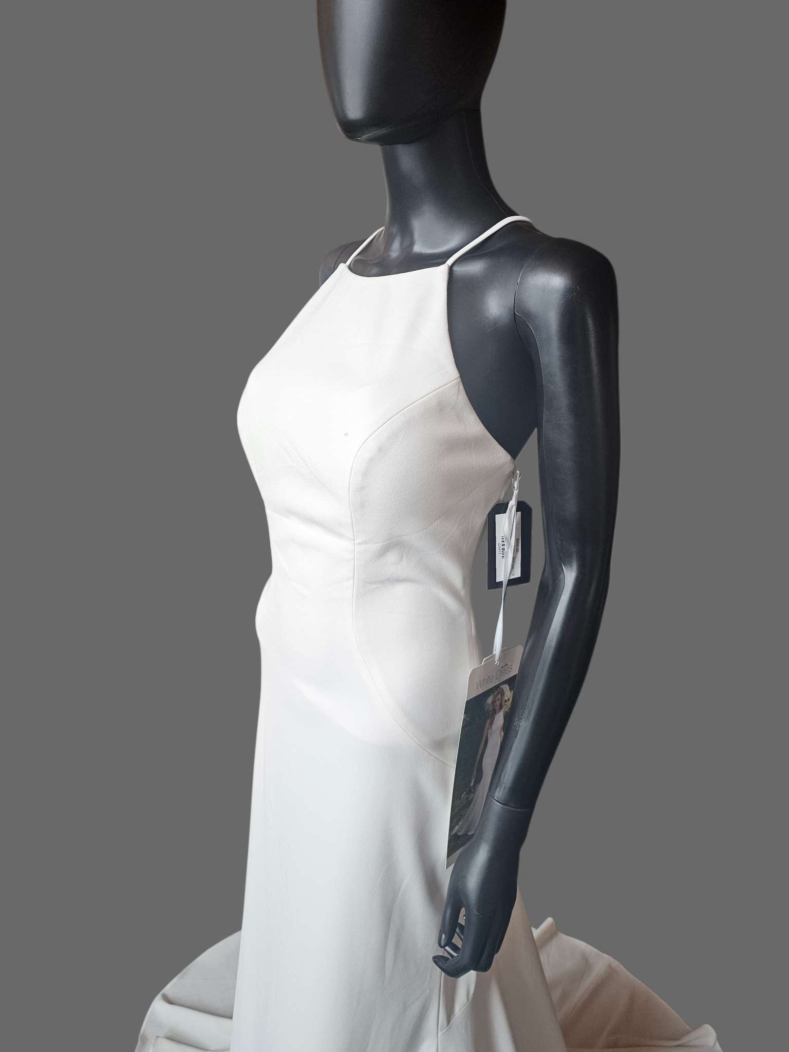 Ivory Stretch Crepe Halter Fit/Flare Minimalist Wedding Gown - Mori Lee