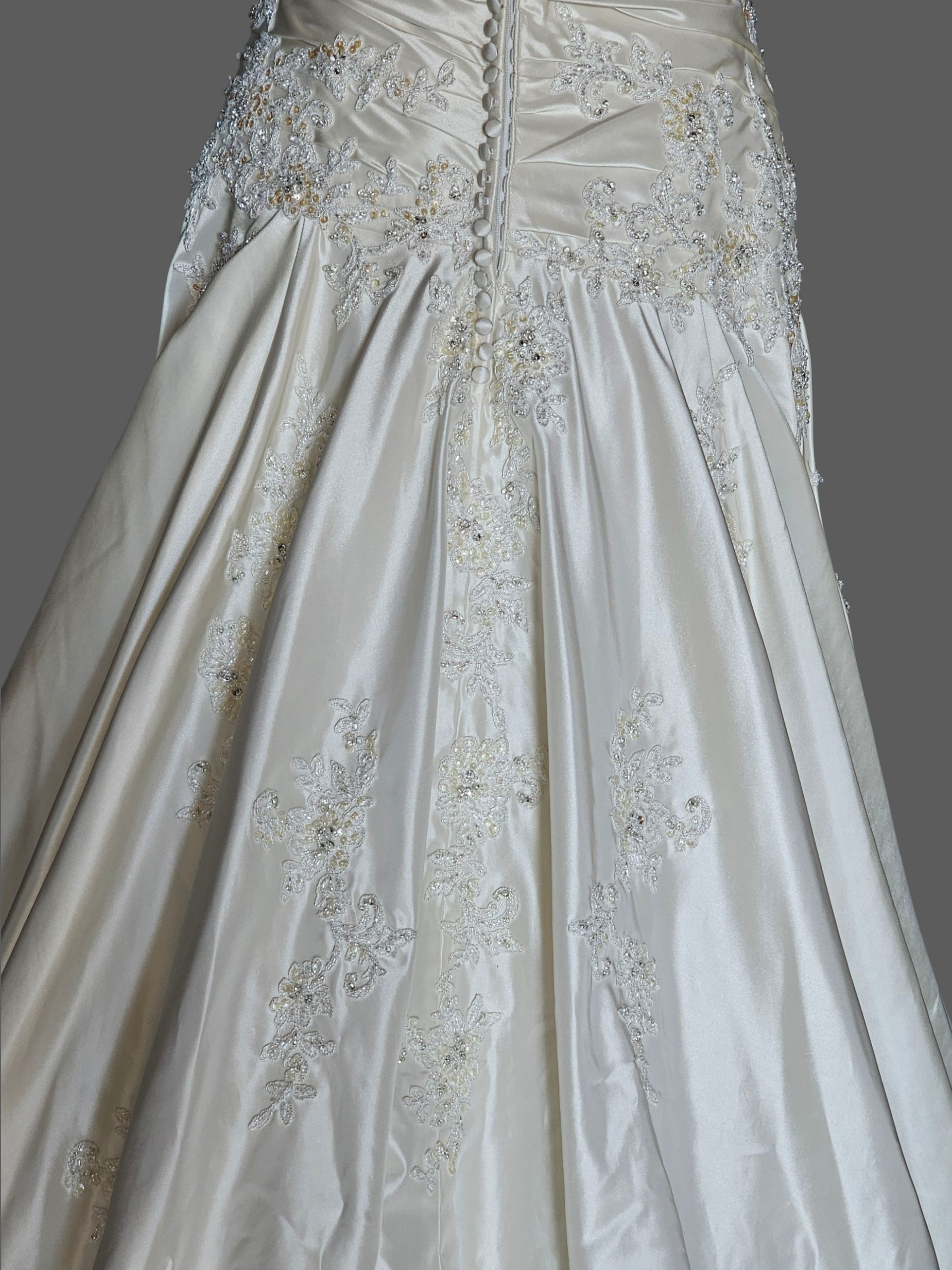 Ivory Taffeta Lace Embellish Wedding Gown - Blue