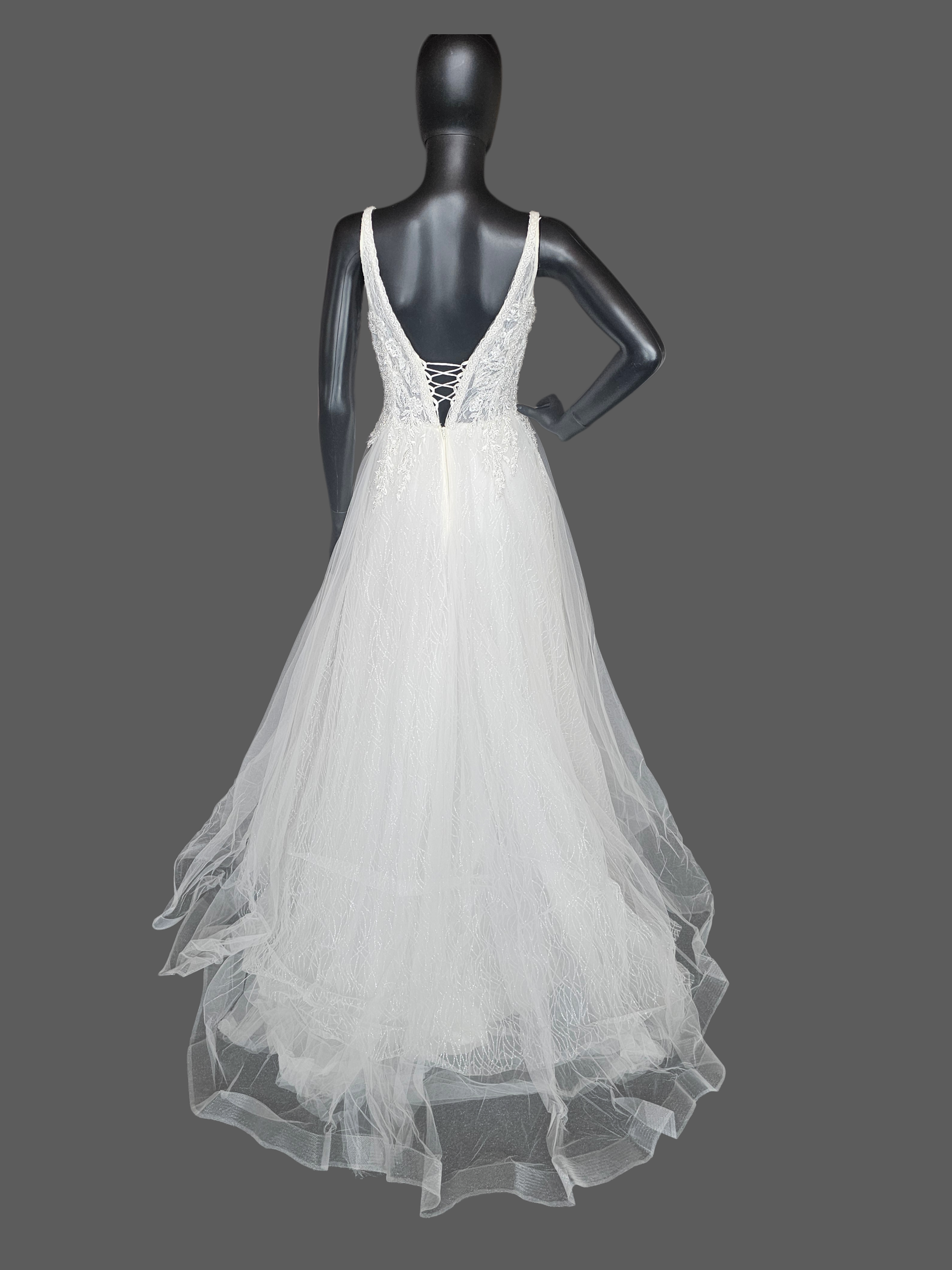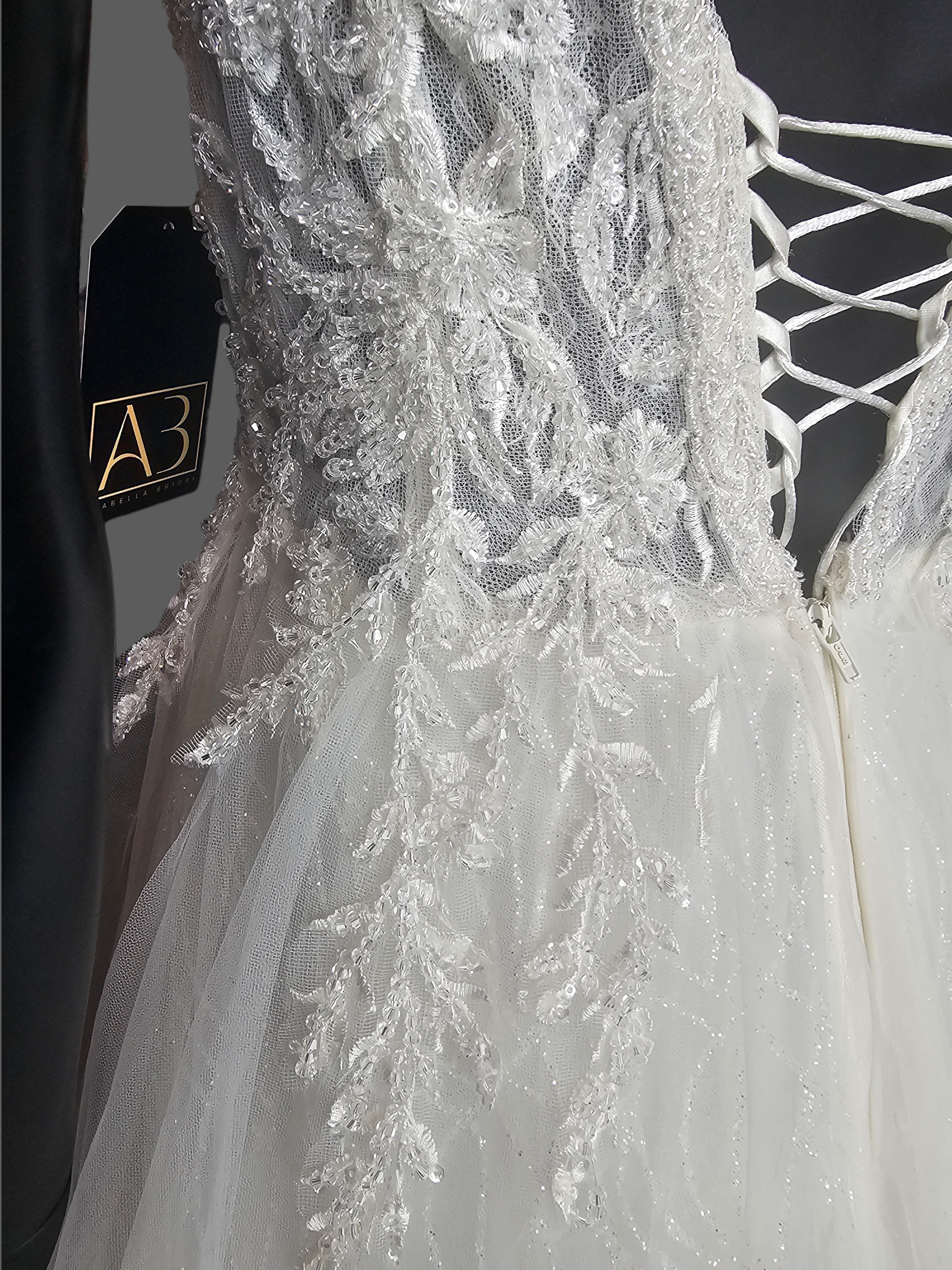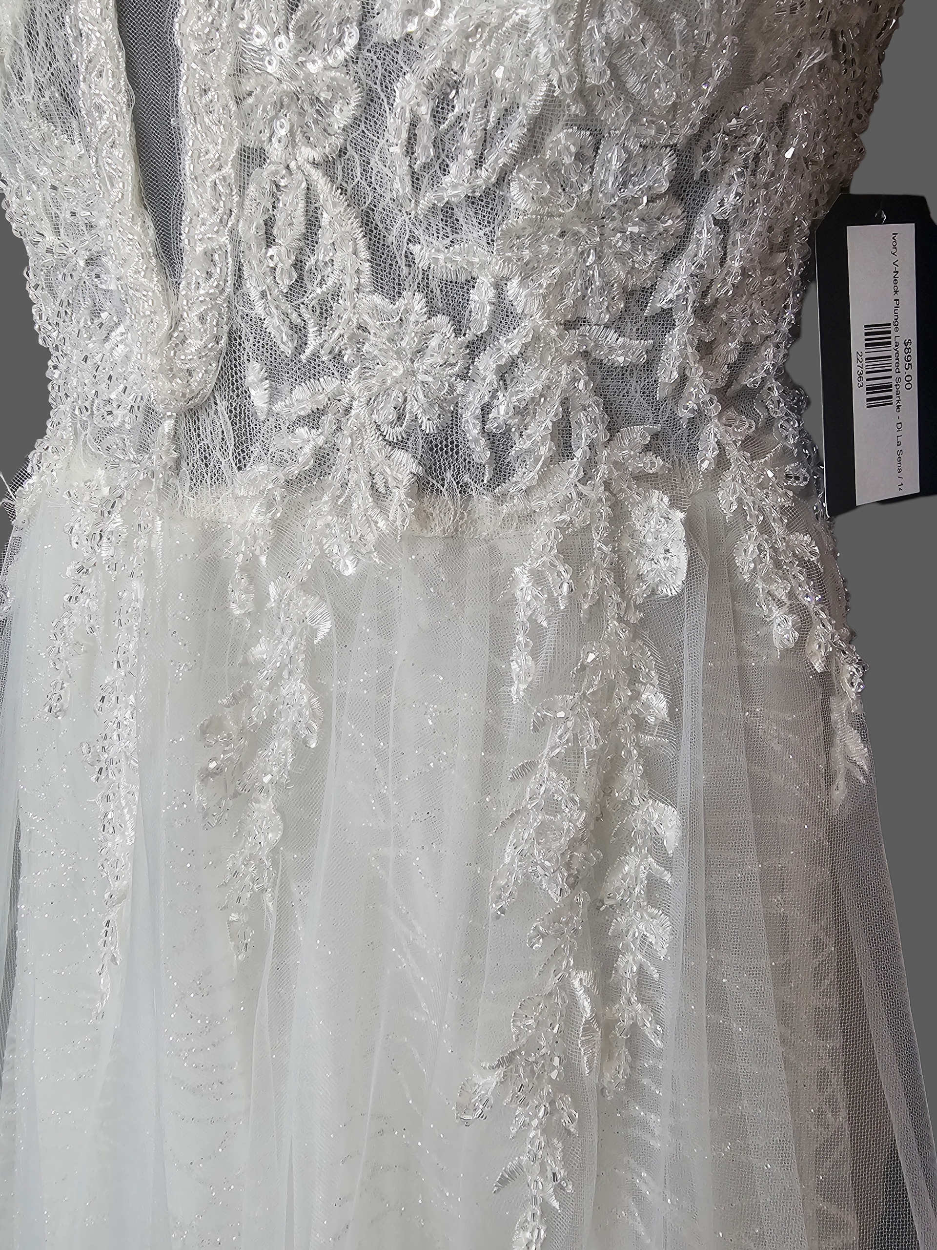 Ivory V-Neck Plunge Layered Sparkle - Di La Sena