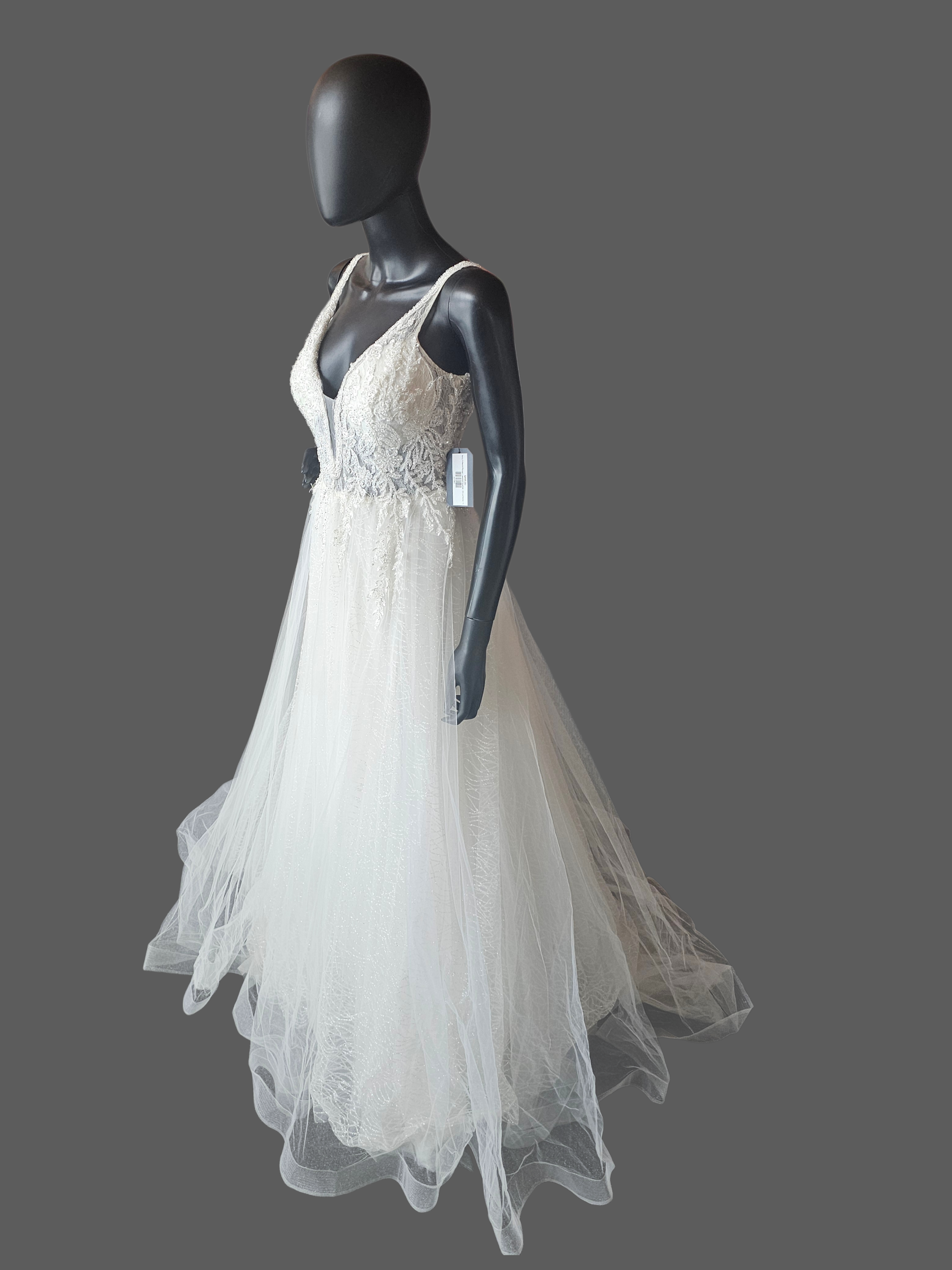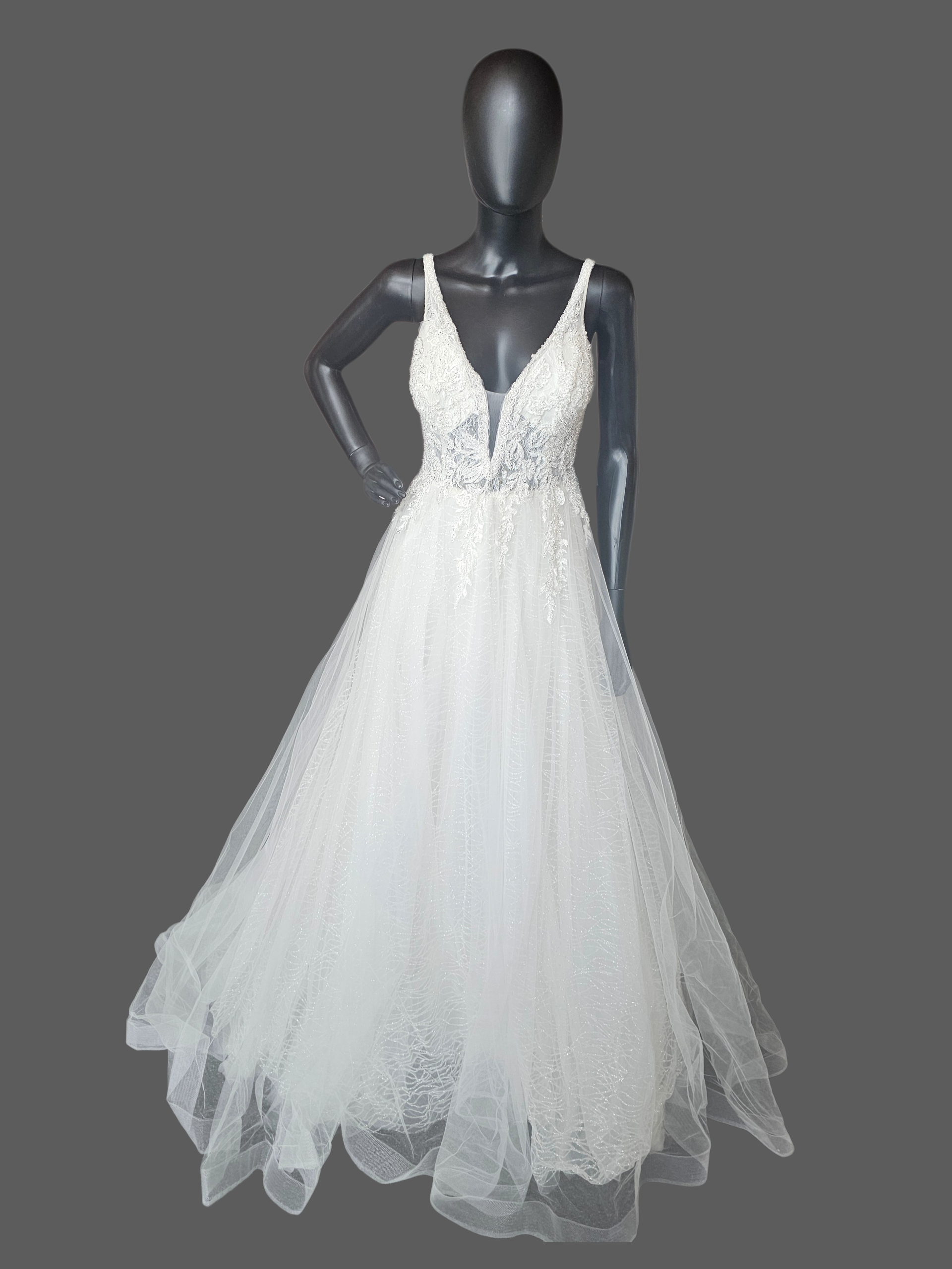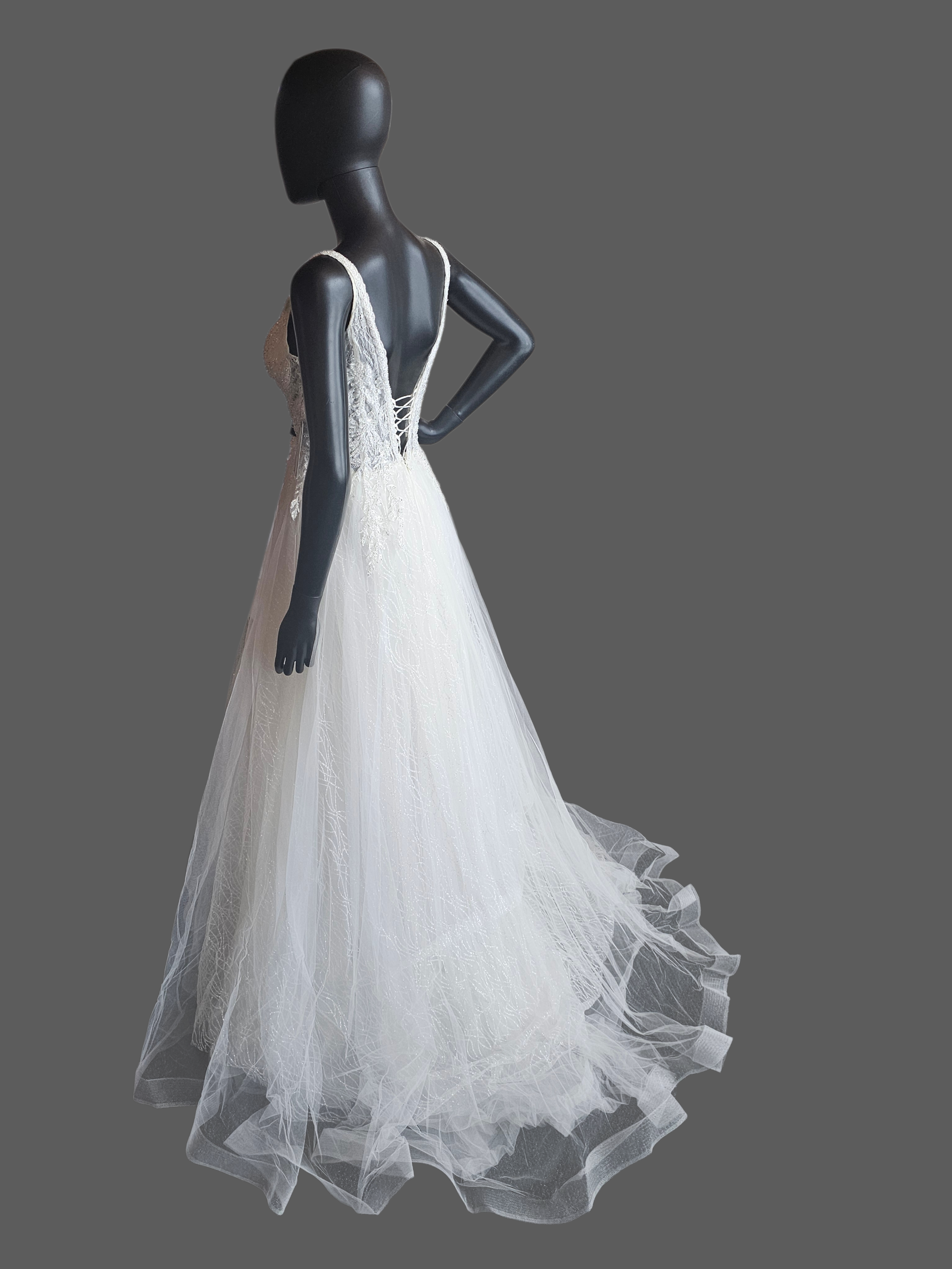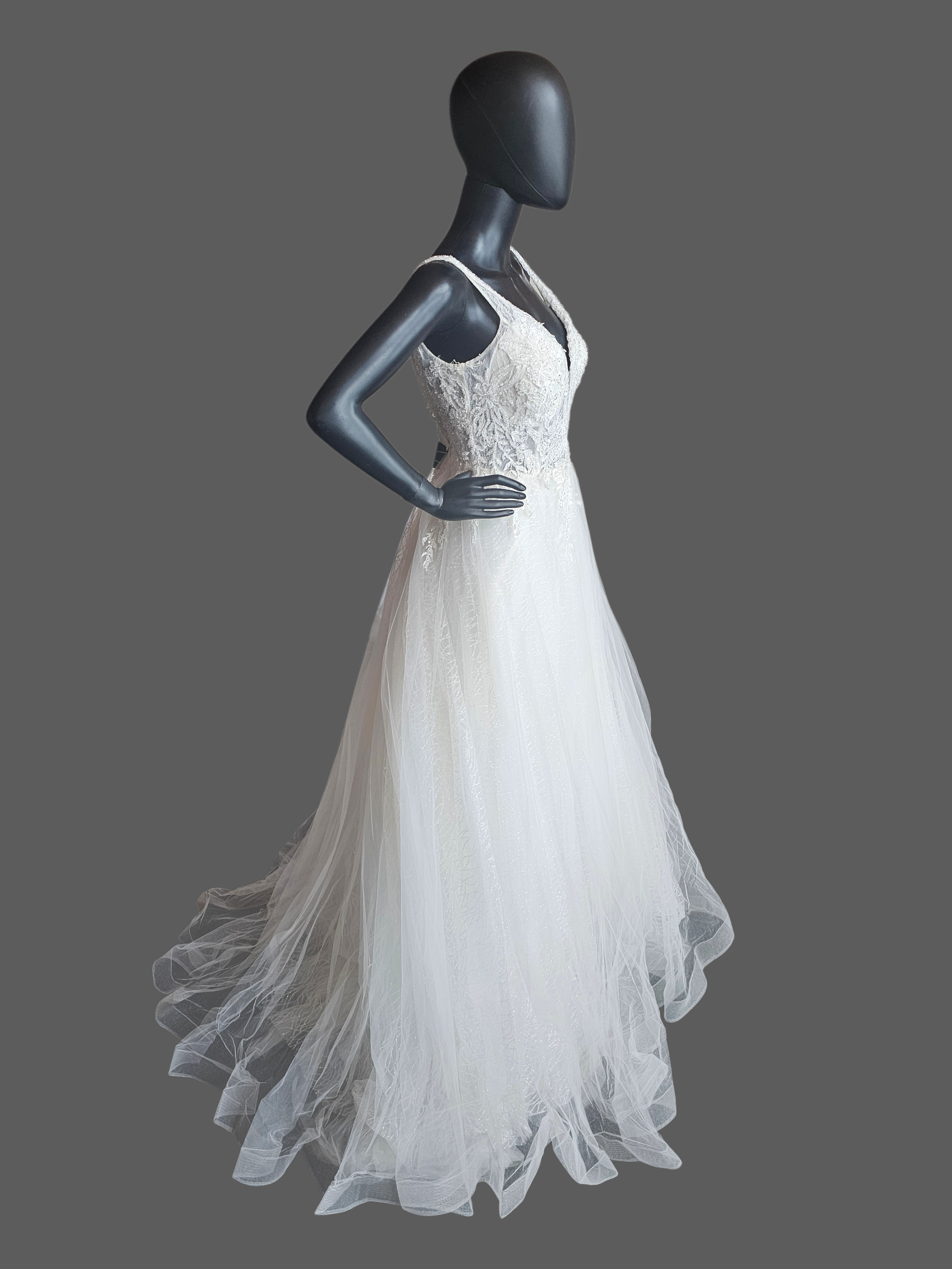 Ivory V-Neck Plunge Layered Sparkle - Di La Sena