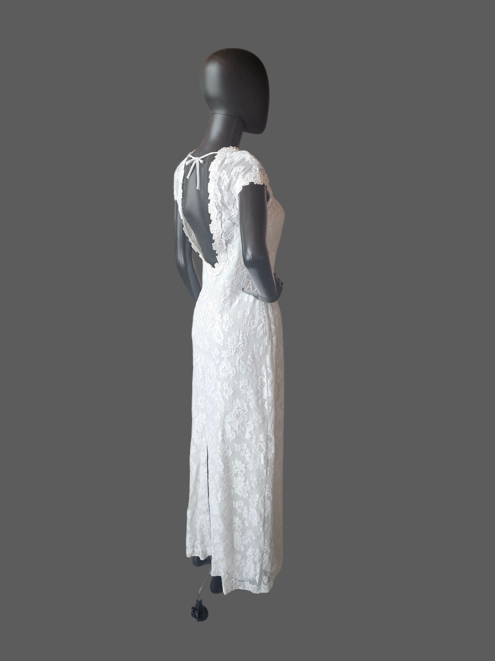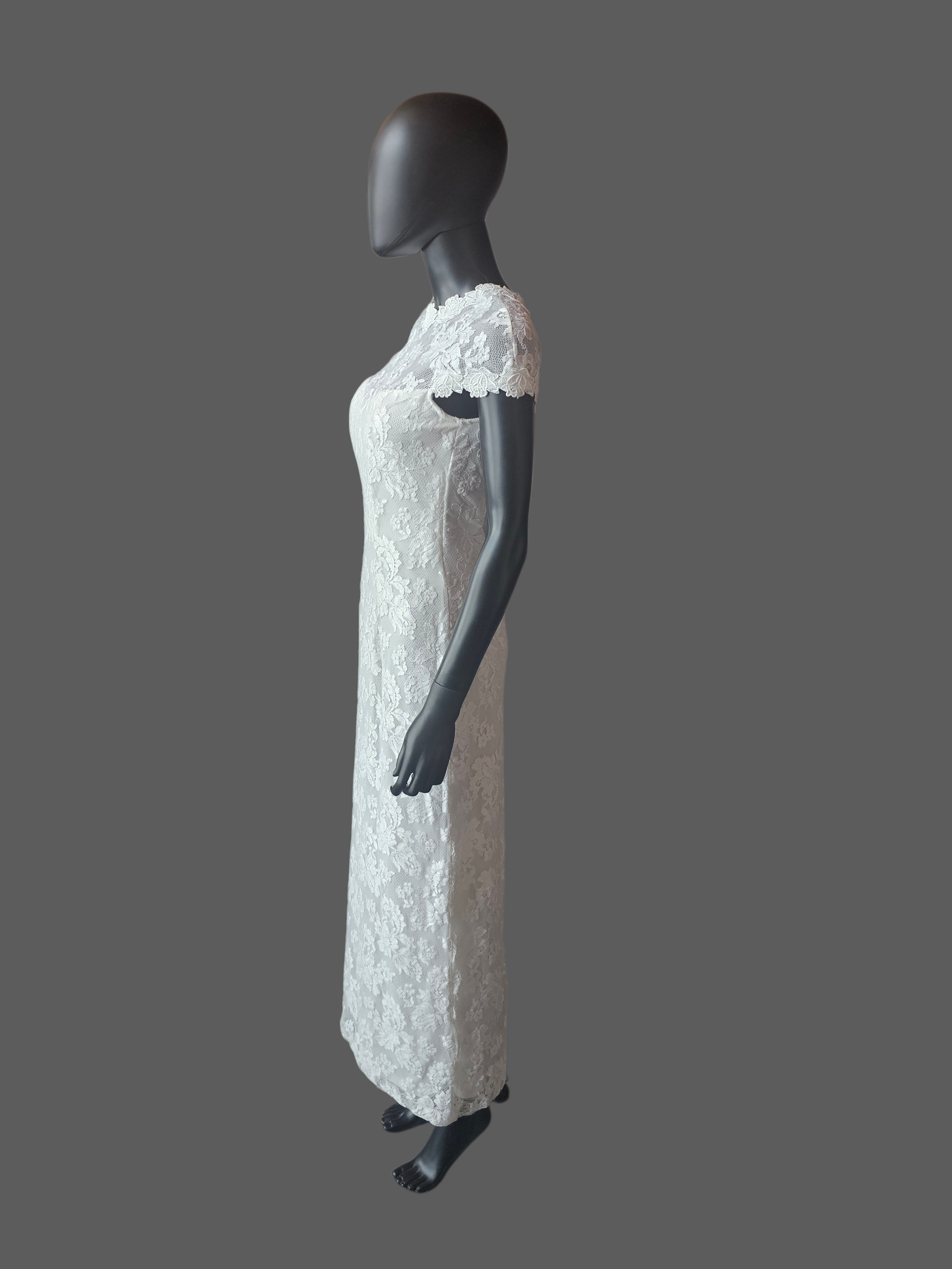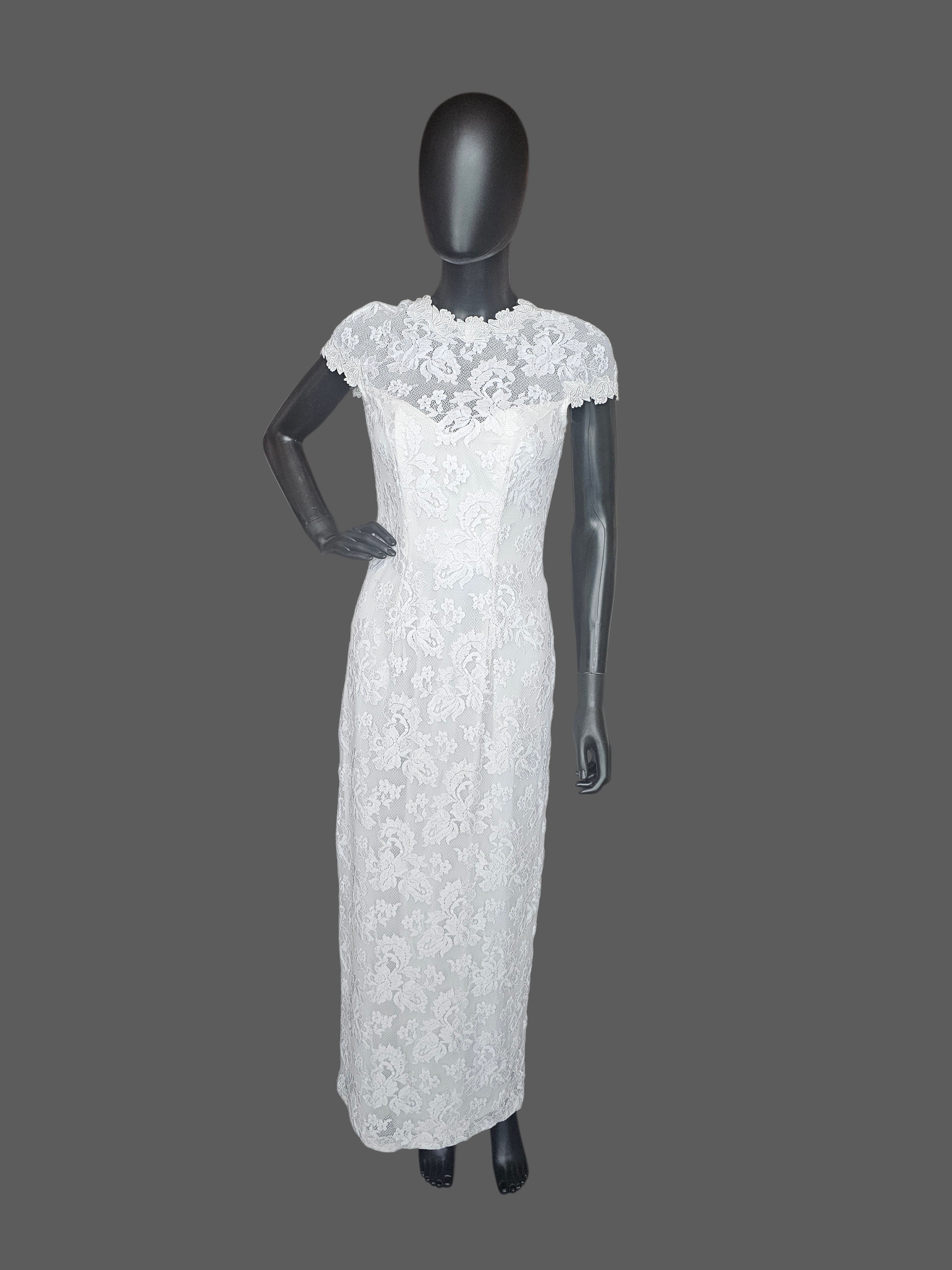 White Lace Fitted Cap Sleeve Straight Cut Ankle Length Formal Dress