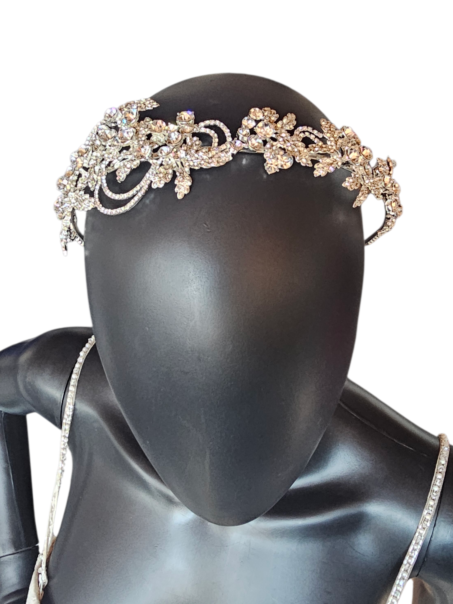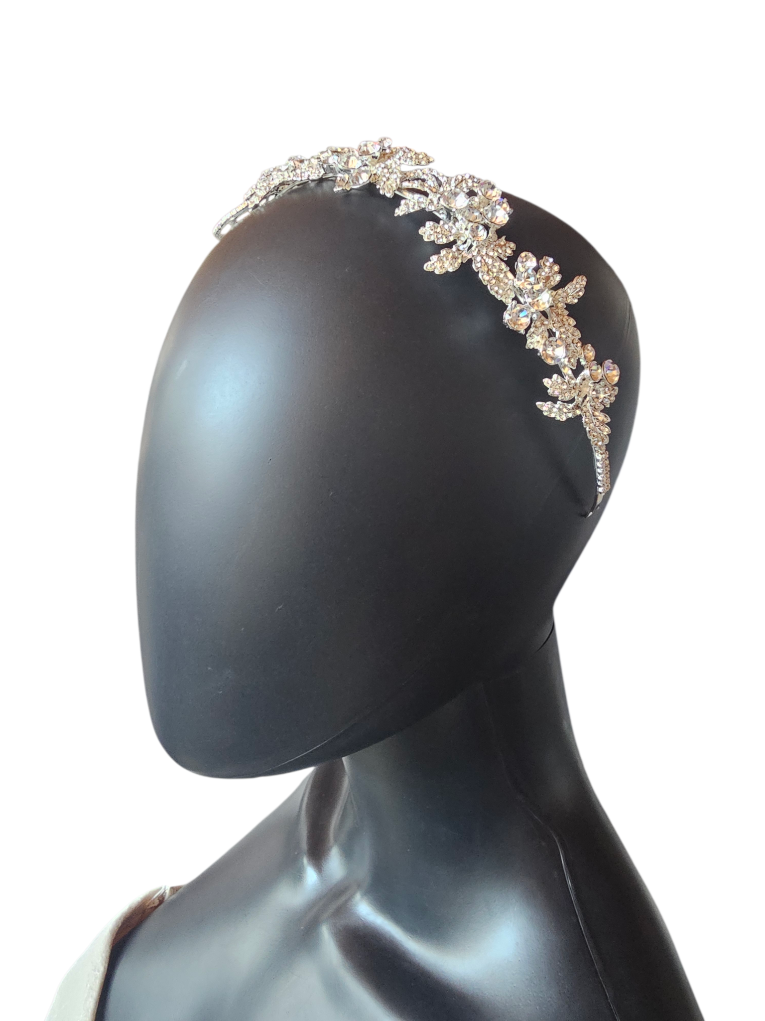 Large Silver Rhinestone/Crystal Asymetrical Filigree Bridal Headband