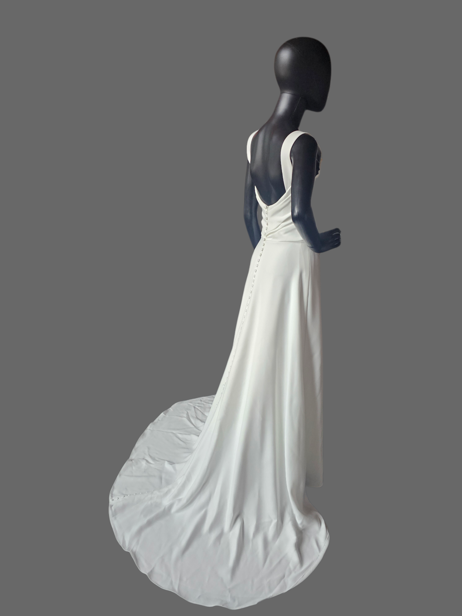 Minimalist Ivory Crepe Wide Strap A-Line Open Back Wedding Gown - Beloved