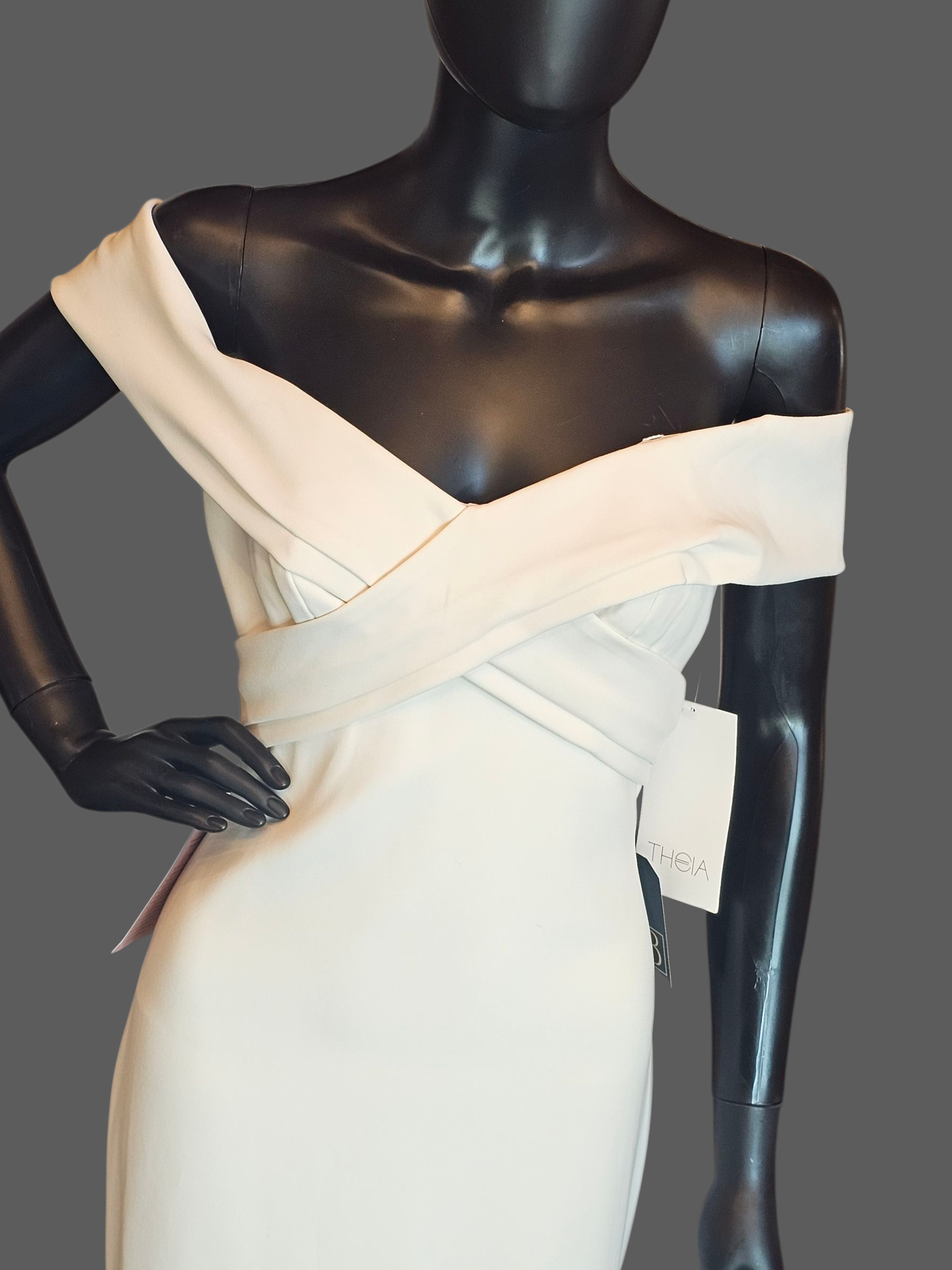 Off Shoulder Ivory Stretch Crepe - Theia NWT
