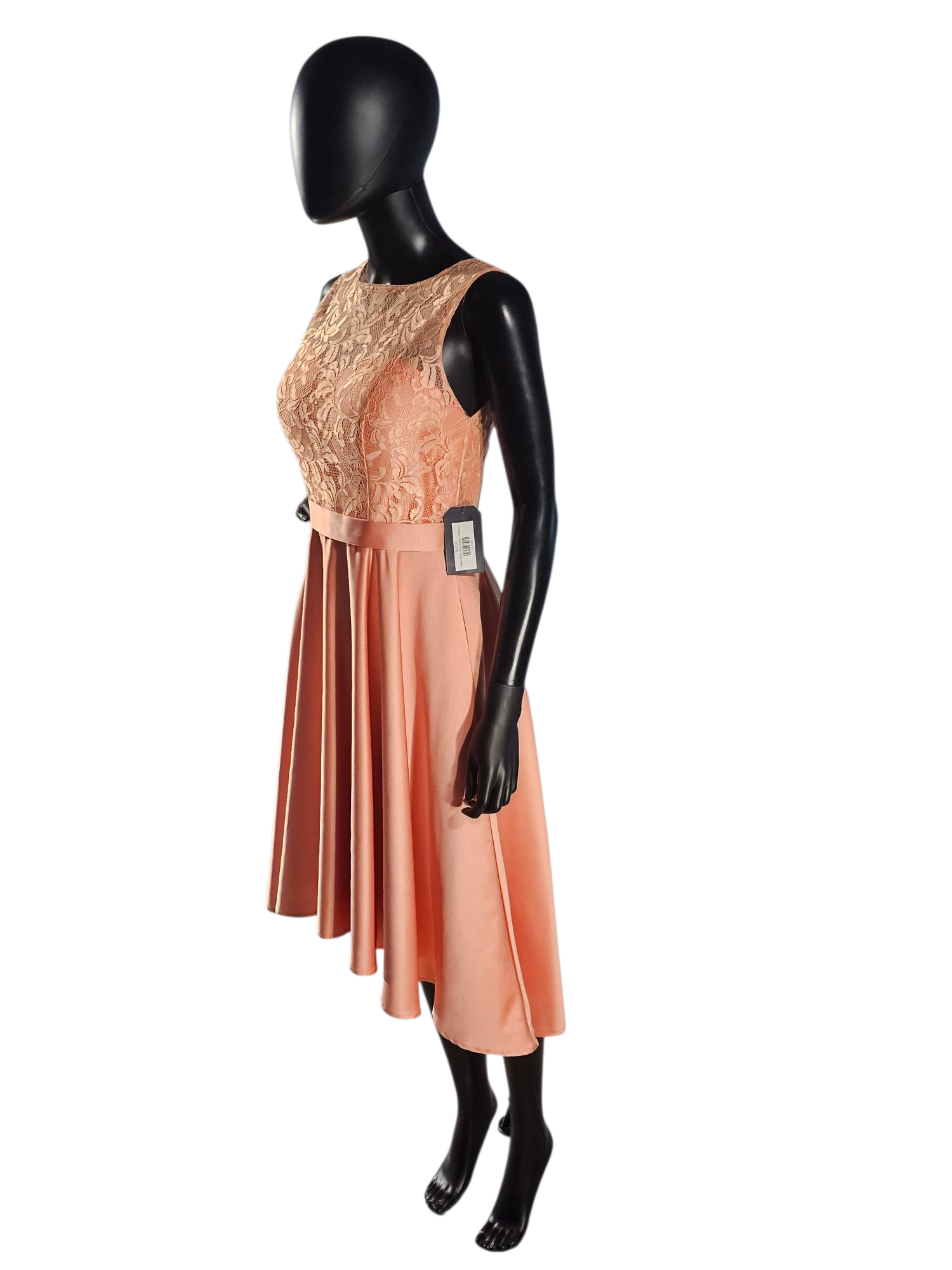 Peach Satin Lace Bodice Cocktail Dress - JJs House