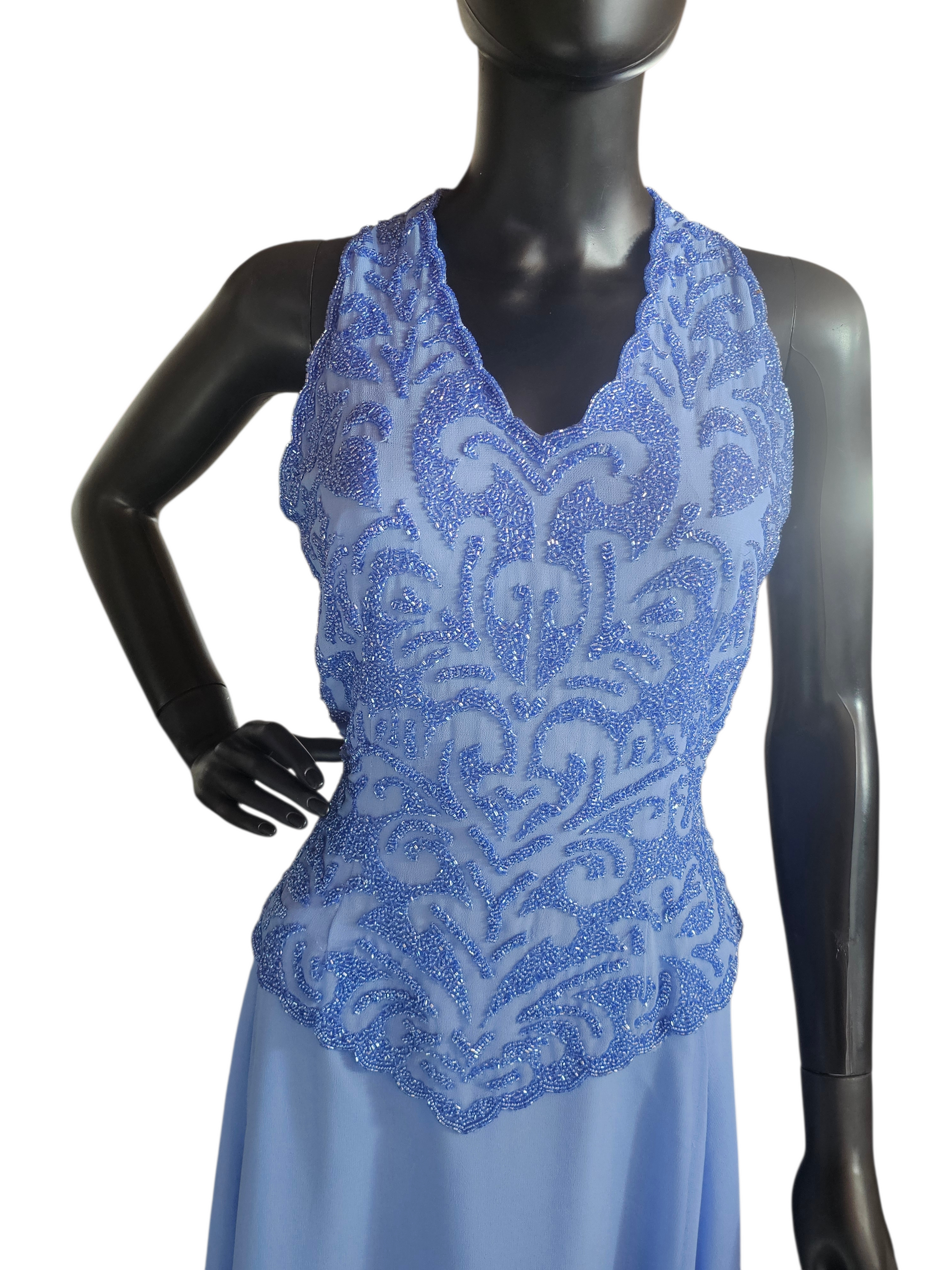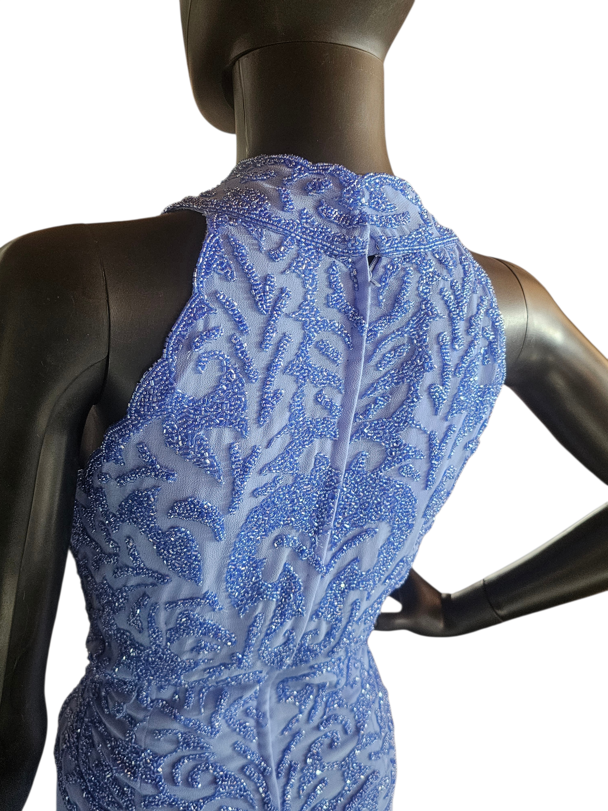 Periwinkle Beaded Halter Formal Dress - JKARA New York - NWT