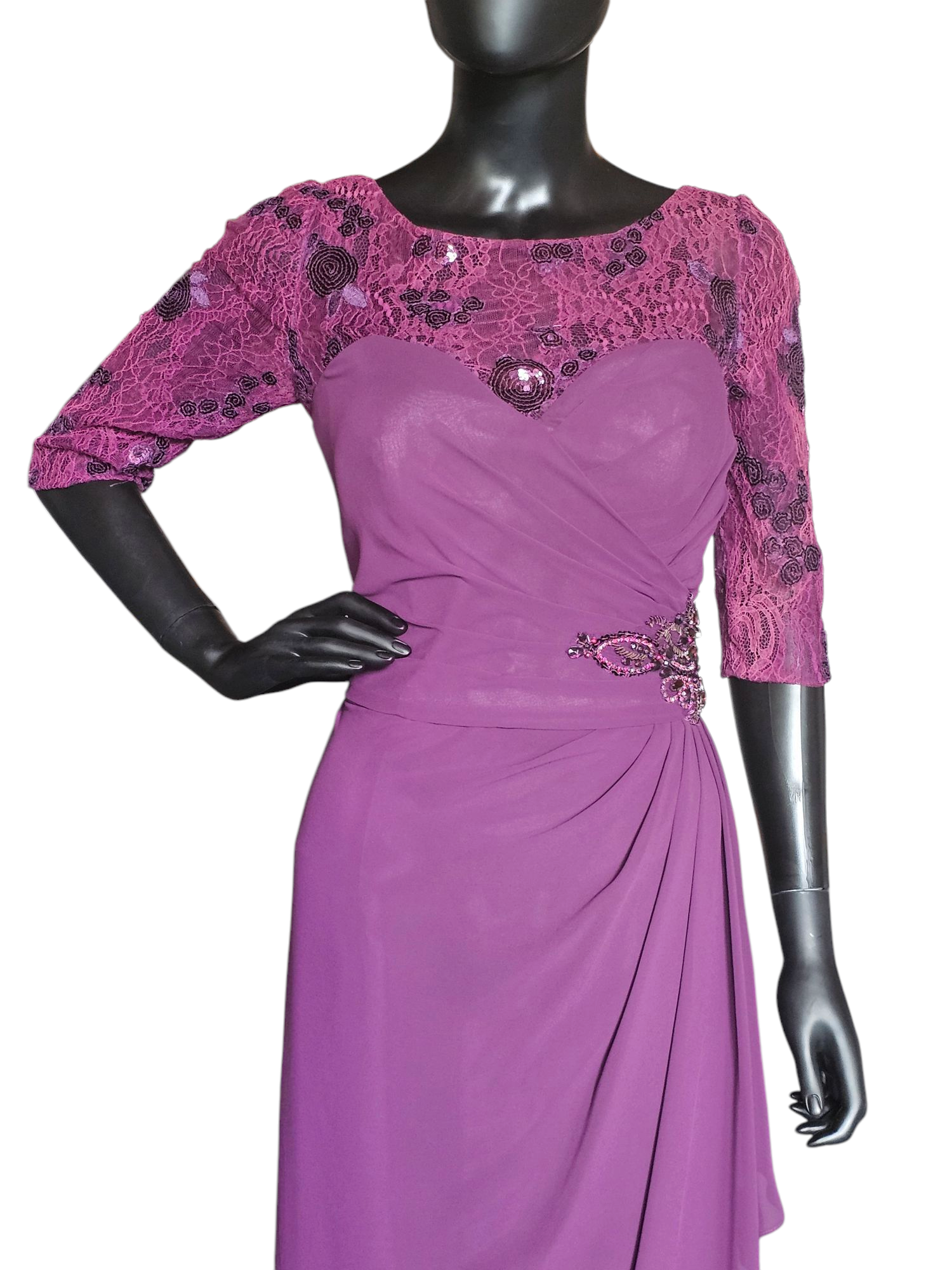 Plum Lace Sleeve Illusion Side Ruched - MGNY