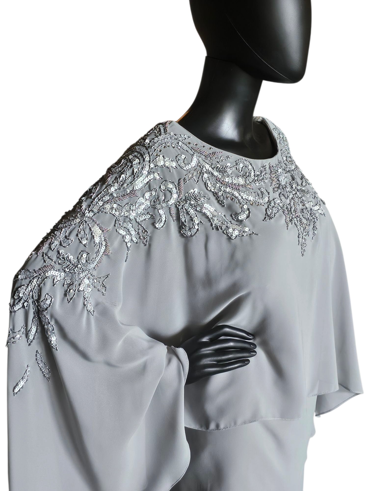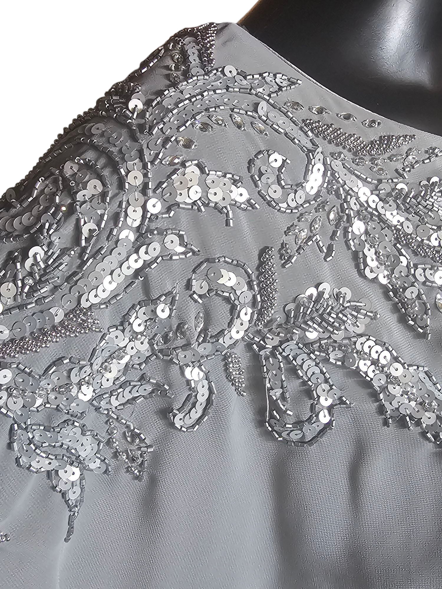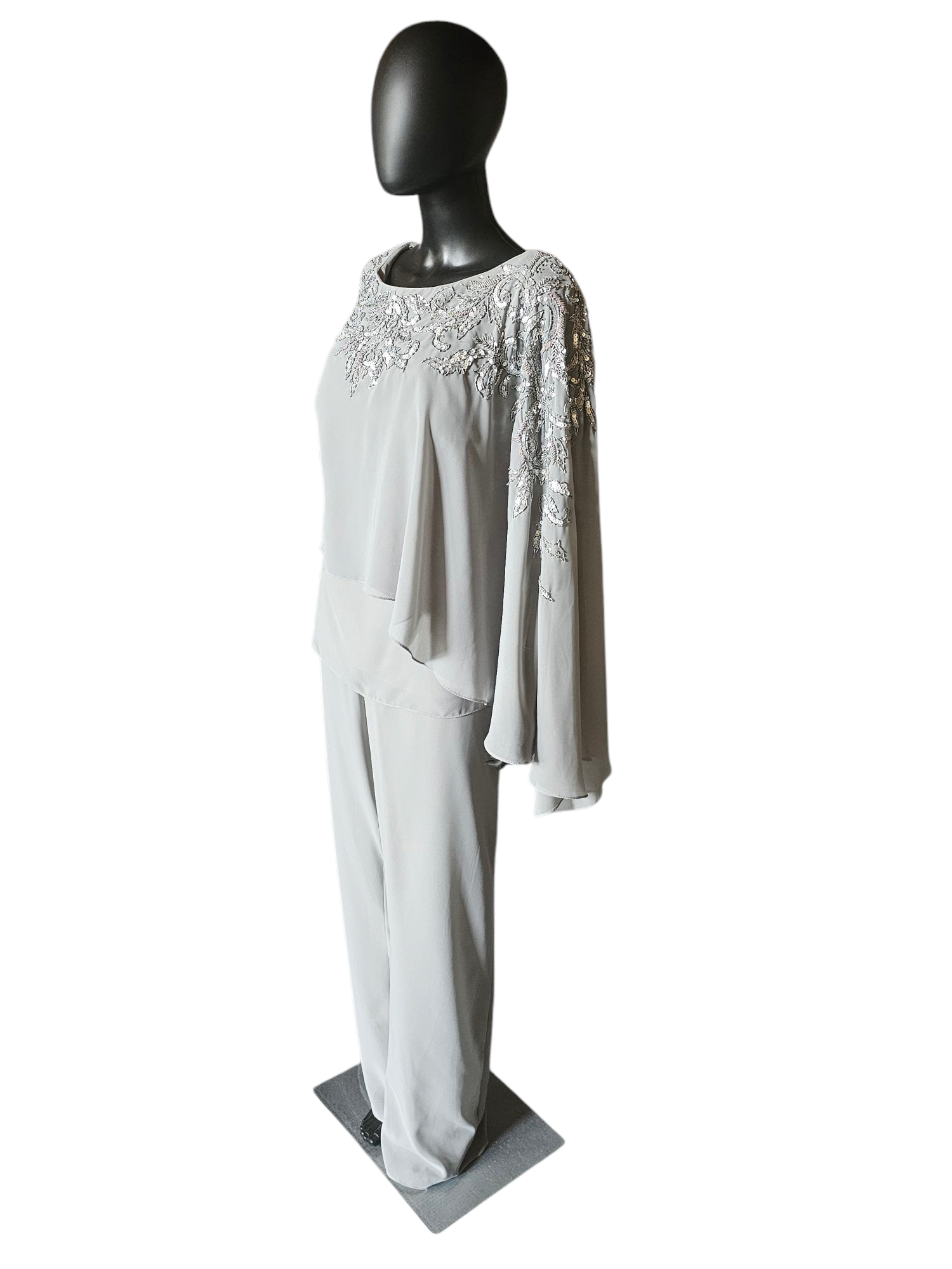 Silver Chiffon 2-Piece Formal Pantsuit - Madeline Gardner NY