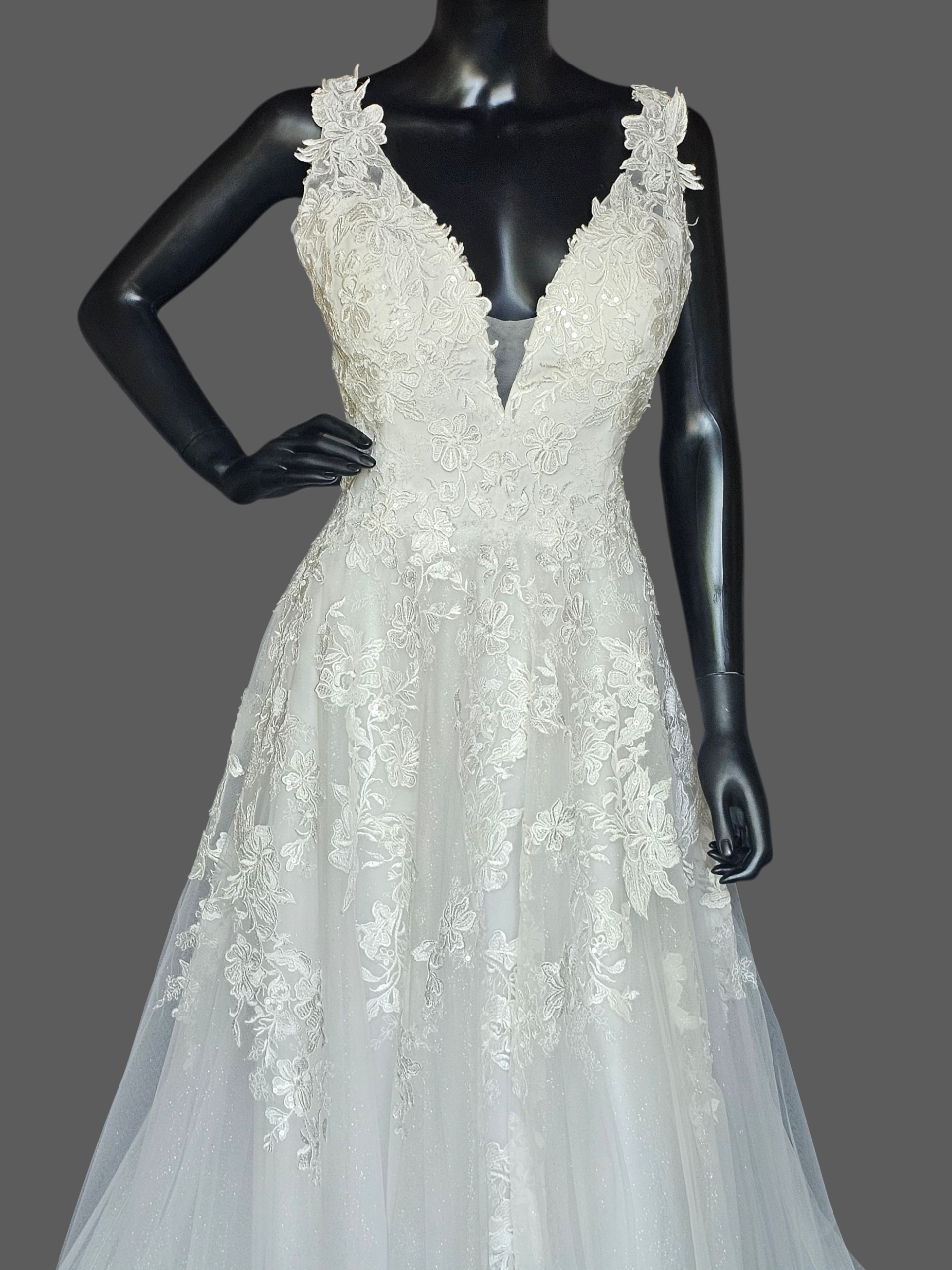 V-Neck Lace Applique Illusion Bodice