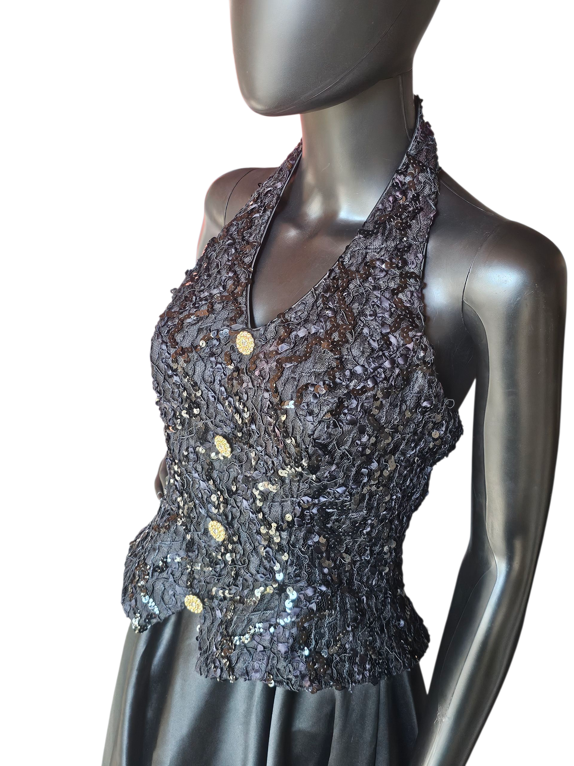 Vintage Black Lace/Satin Halter - Bari Jay