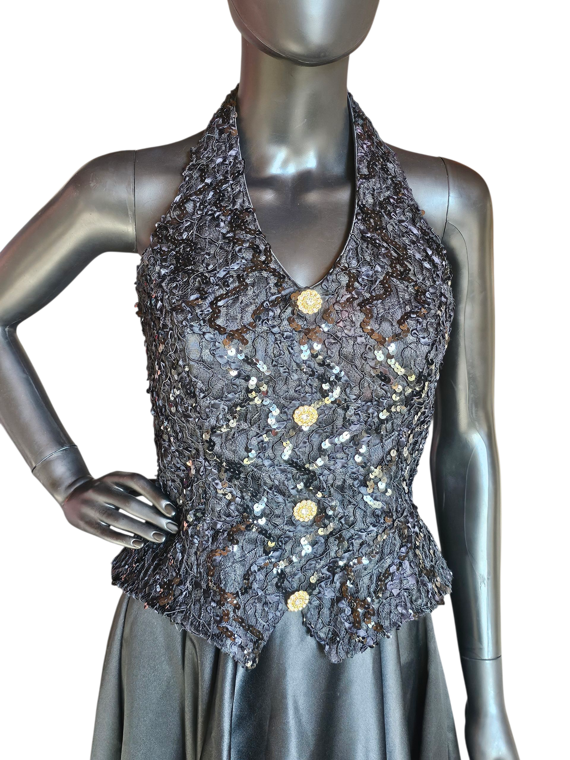 Vintage Black Lace/Satin Halter Formal Dress - Bari Jay