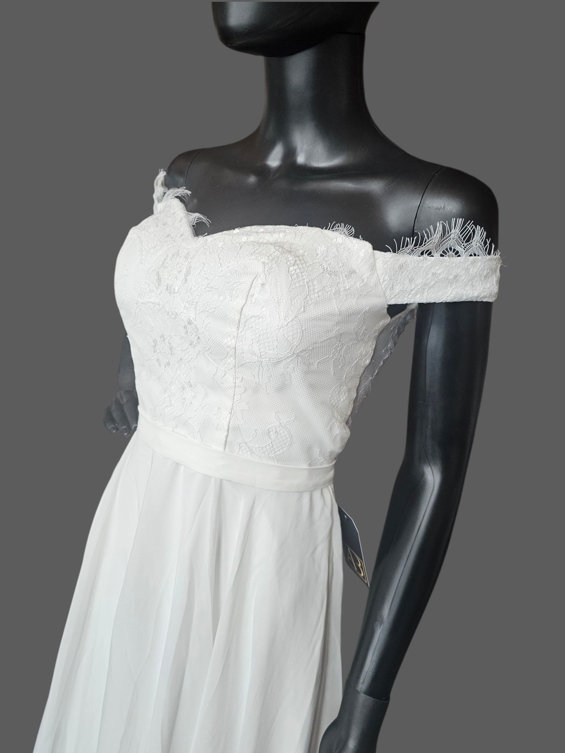 White Off Shoulder Tea Length Courthouse Wedding Dress - JJ's House NWT