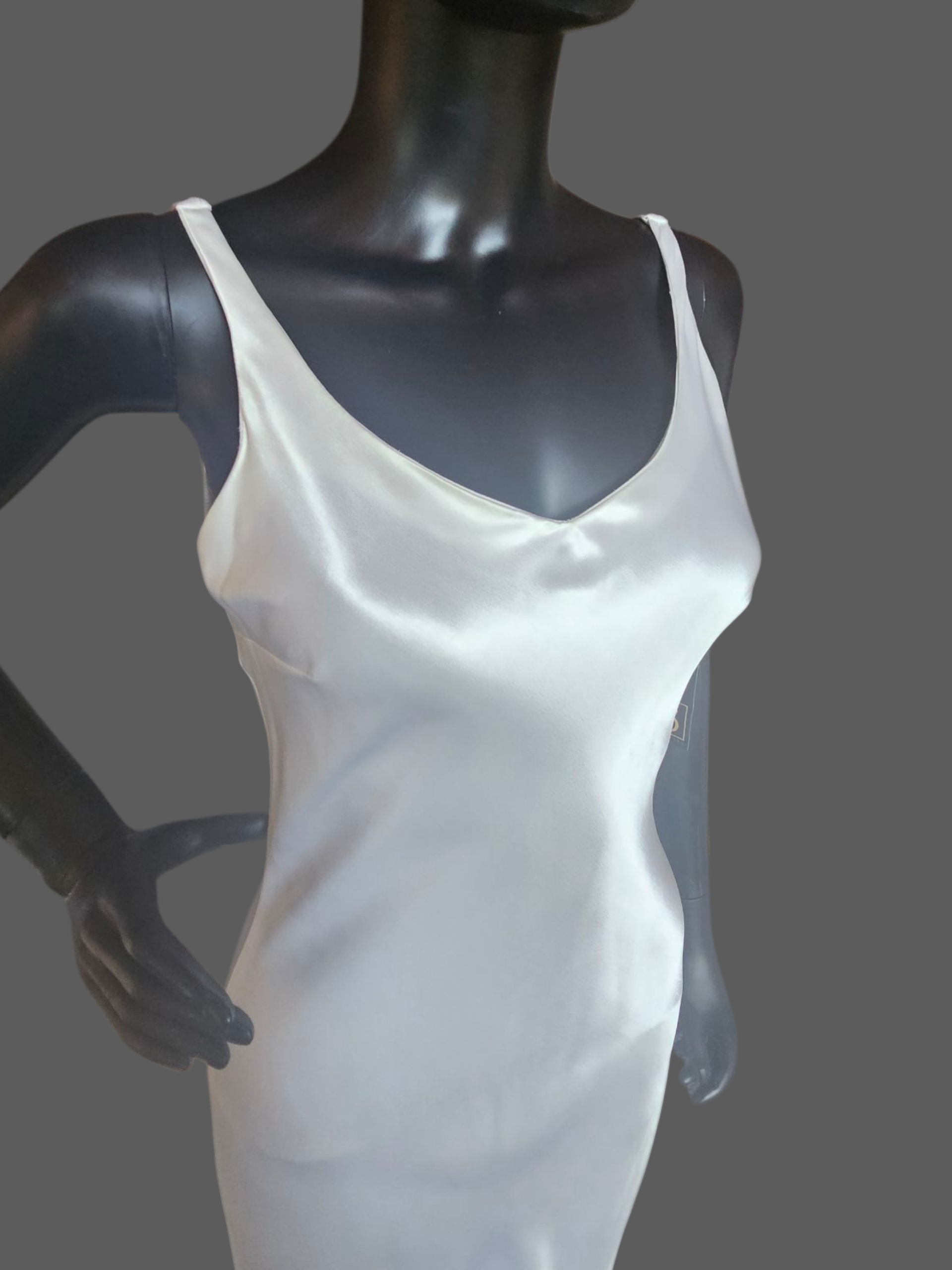 White Satin Simple Sheath Wedding Dress W/Matching Shawl - Zum Zum