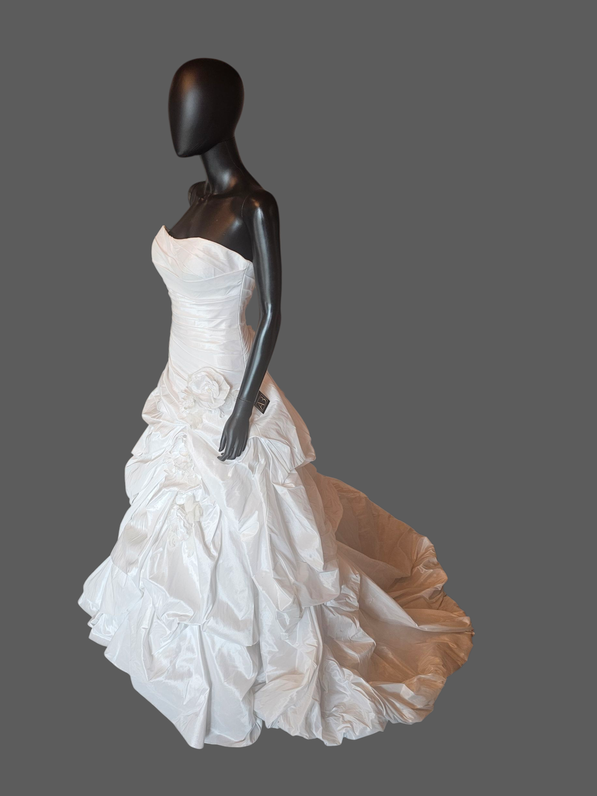 White Shimmering Taffeta Dropped Waist Ruched Undertuck Cupcake Wedding Gown - Casablanca