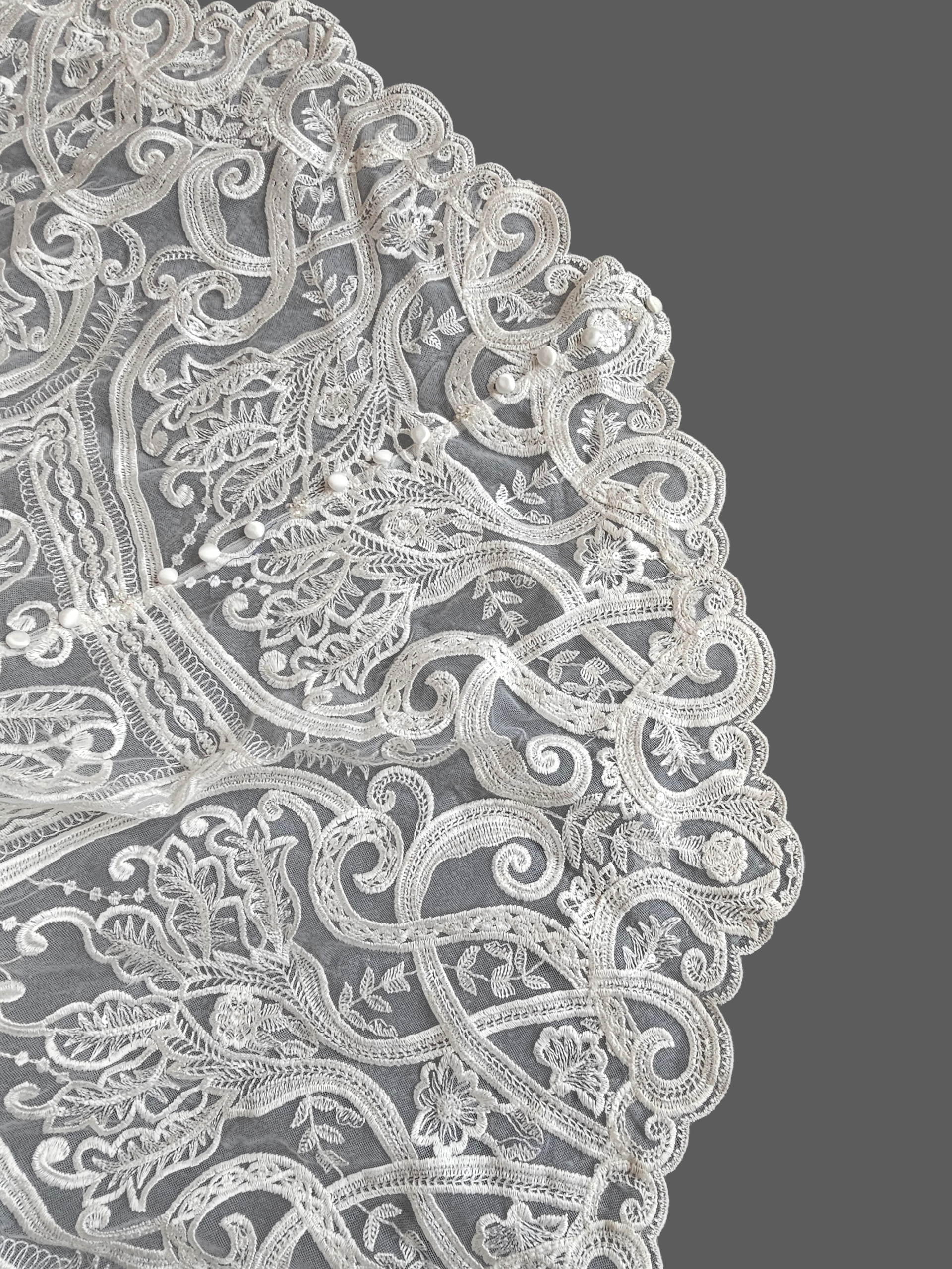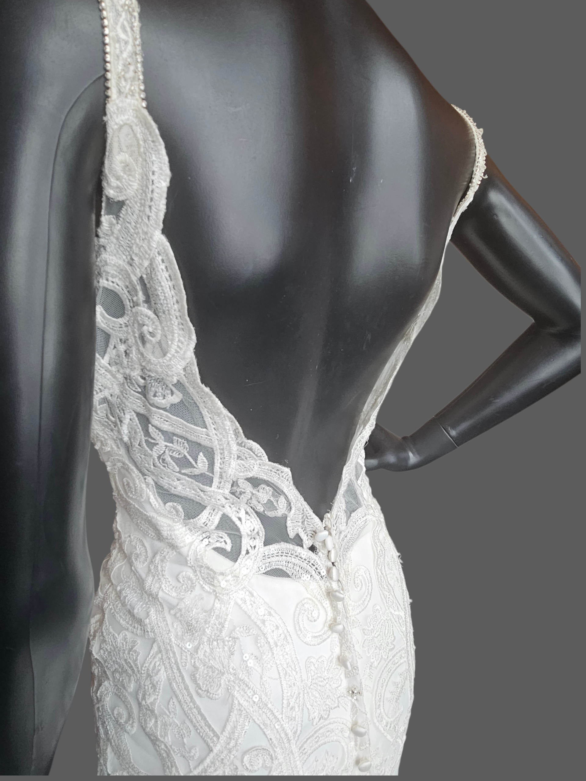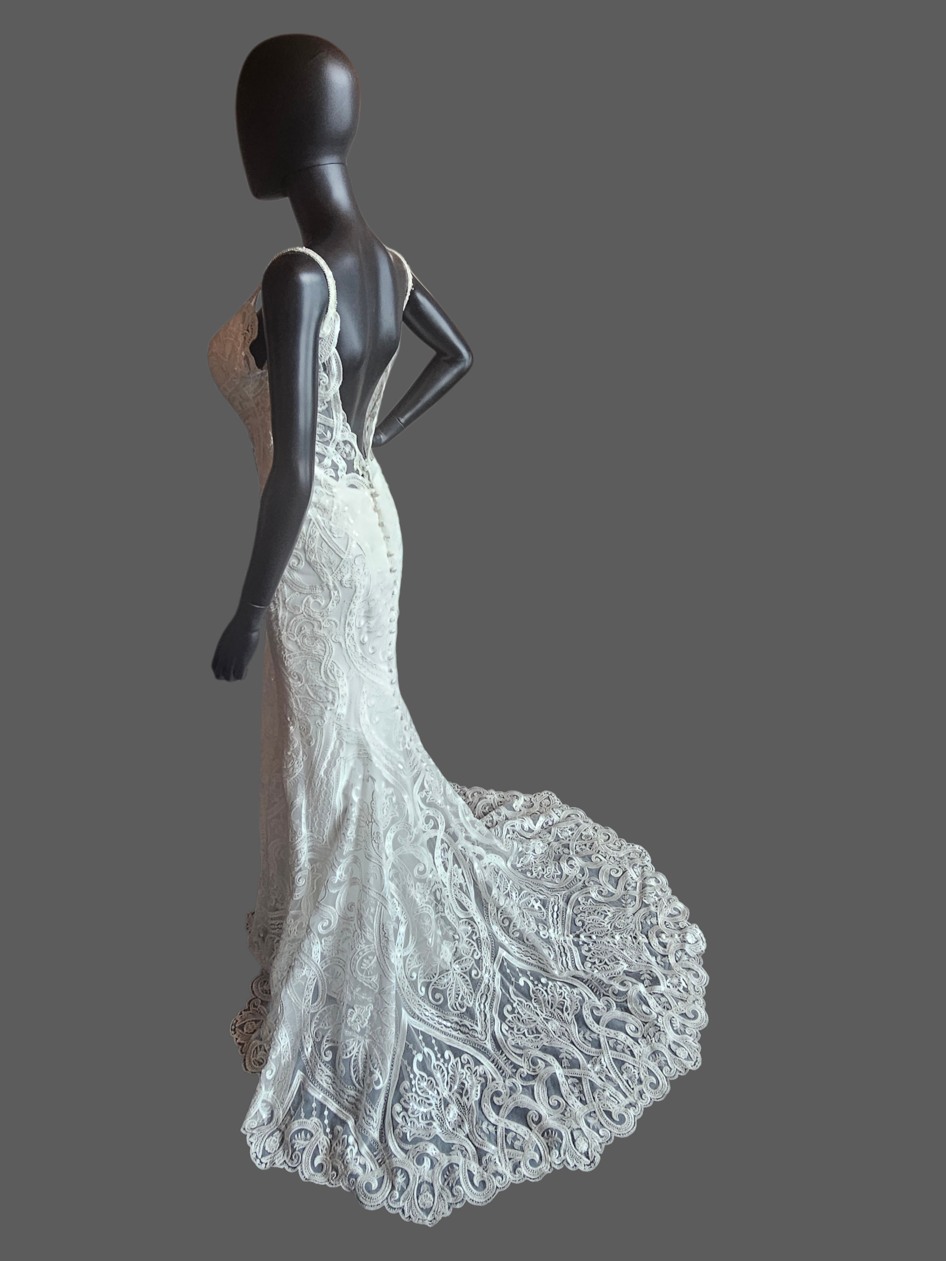 White Plunge V-Neck Lace Fit/Flare Wedding Gown - Hadley Bloom
